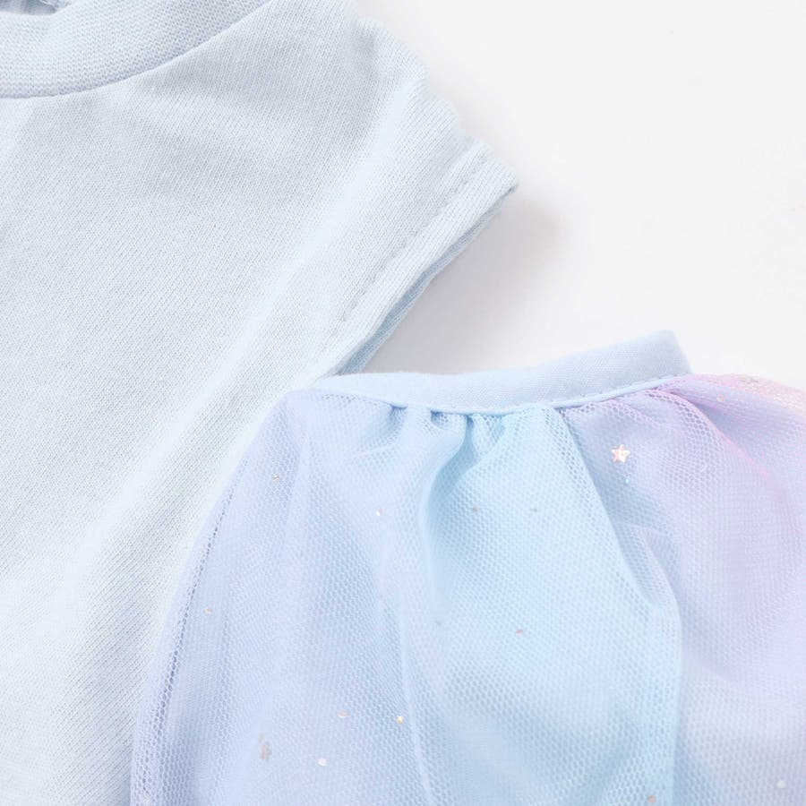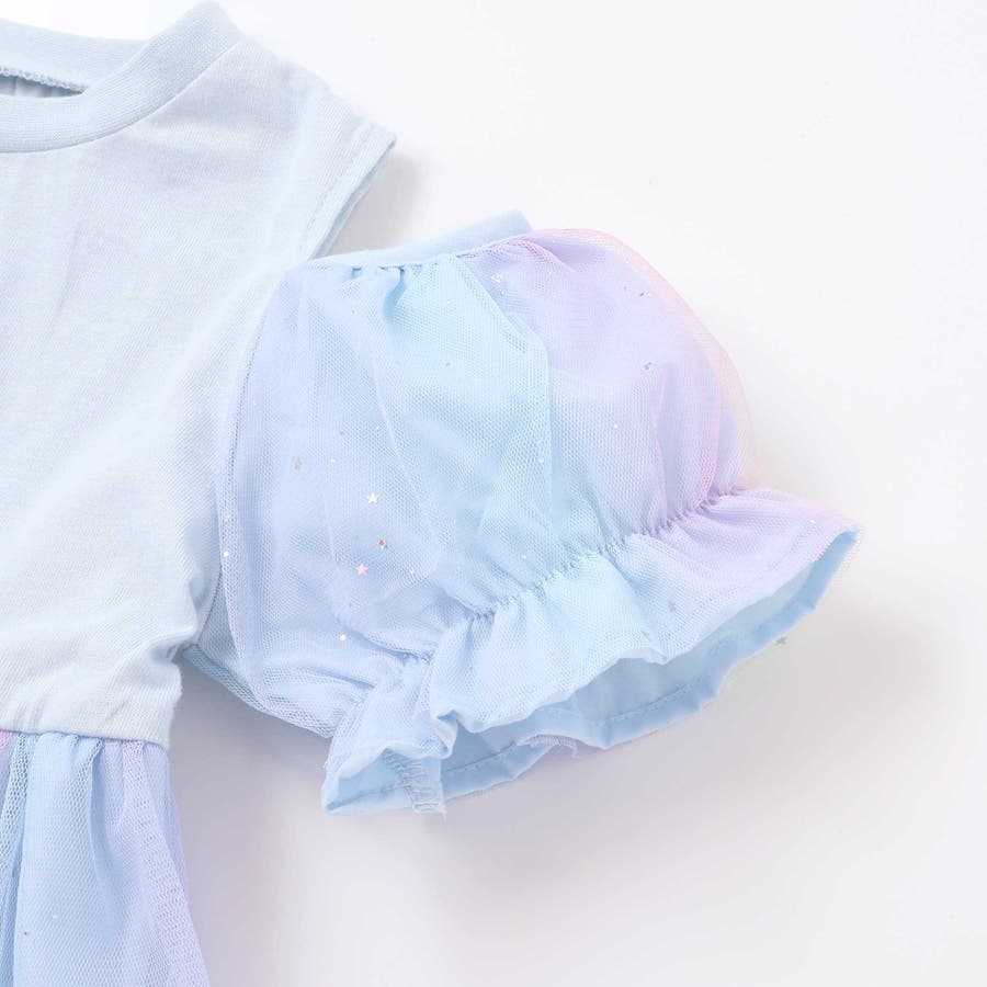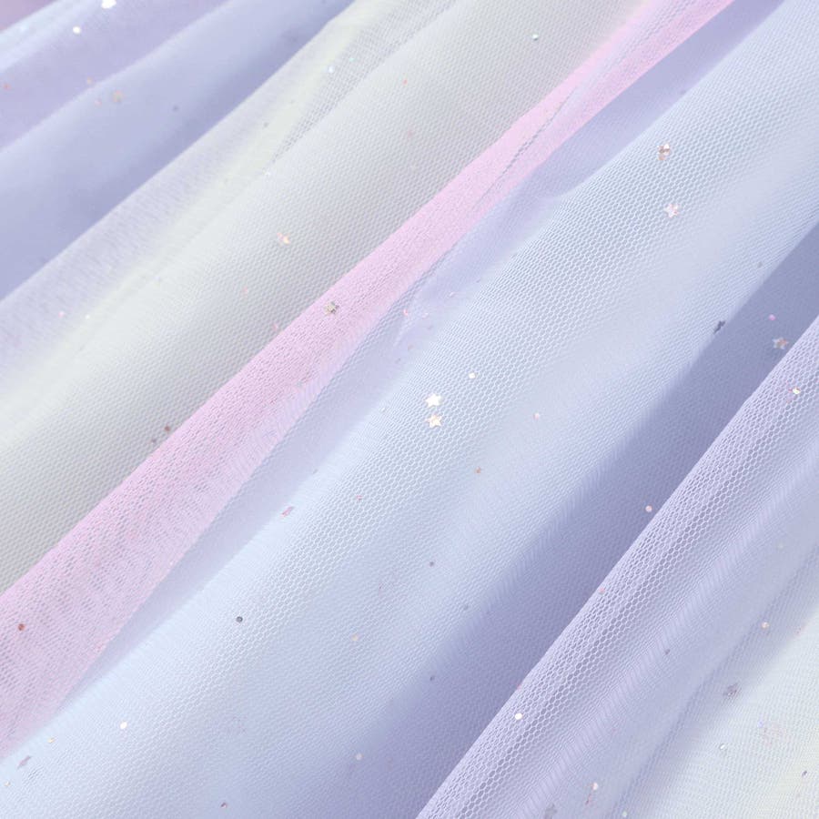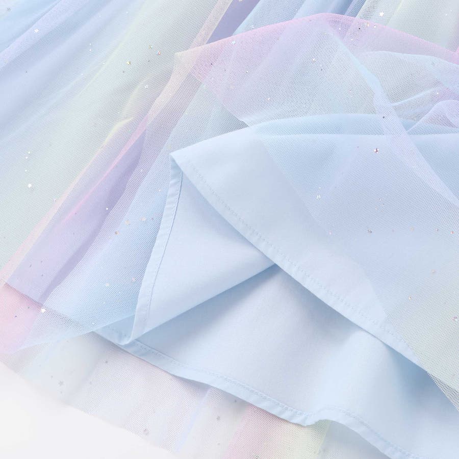 重ねたチュールのスカートはオーロラカラーで心ときめくデザインになっています。