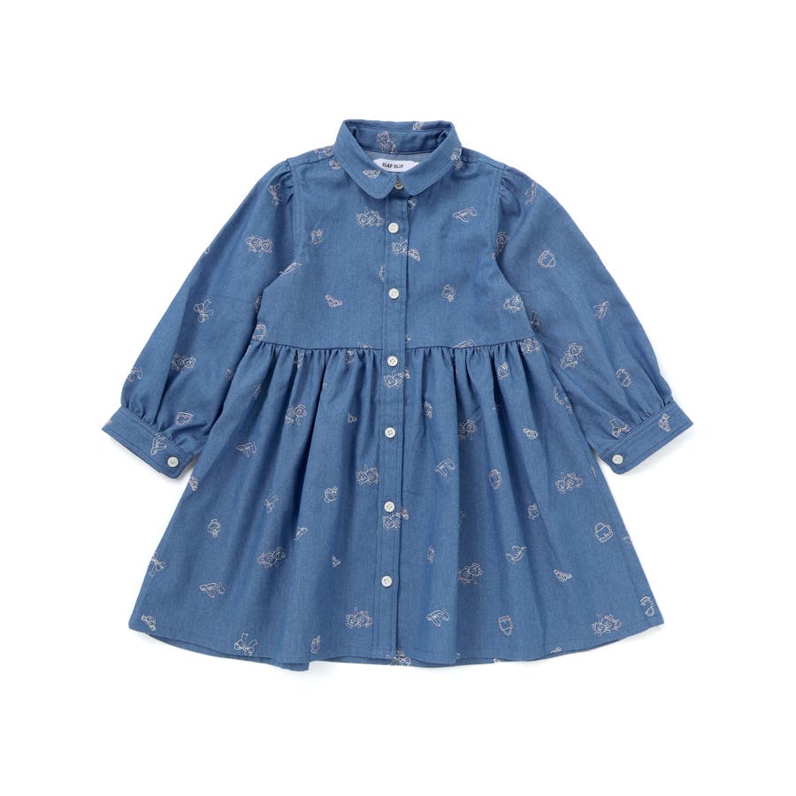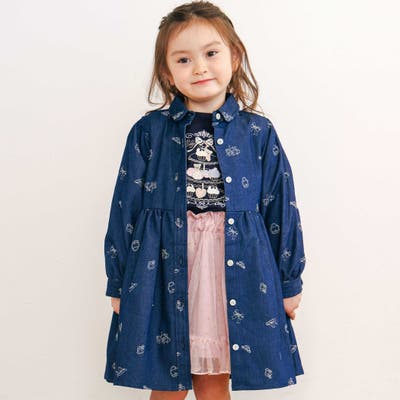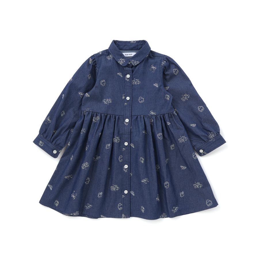 刺しゅう総柄襟付きデニムワンピース(80~130cm)