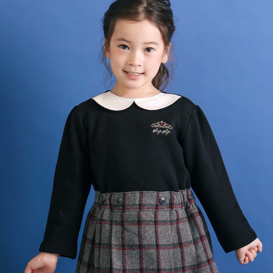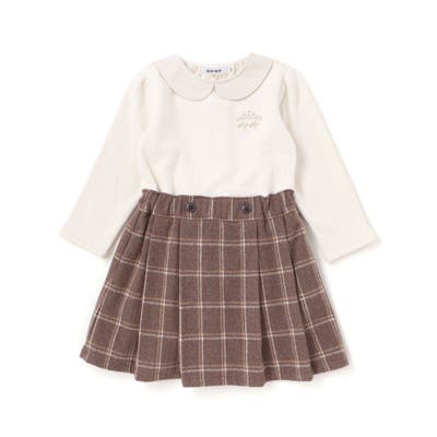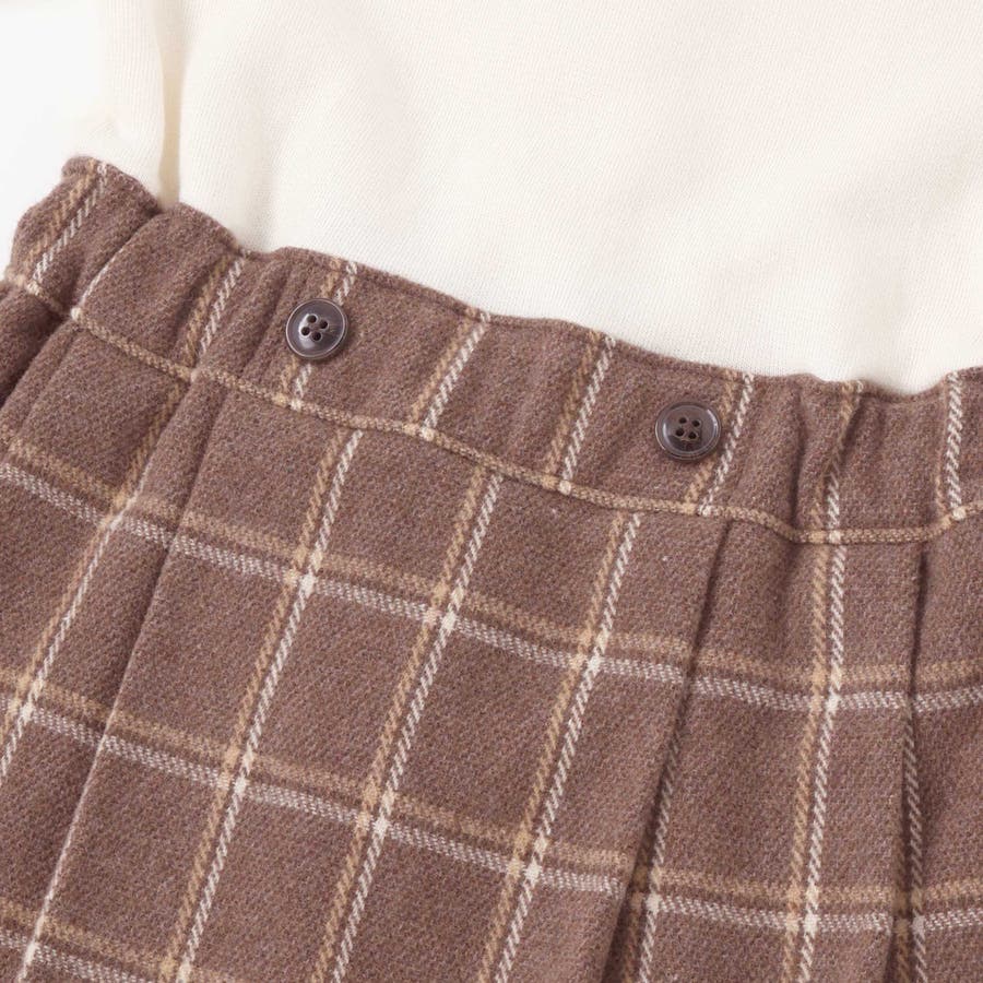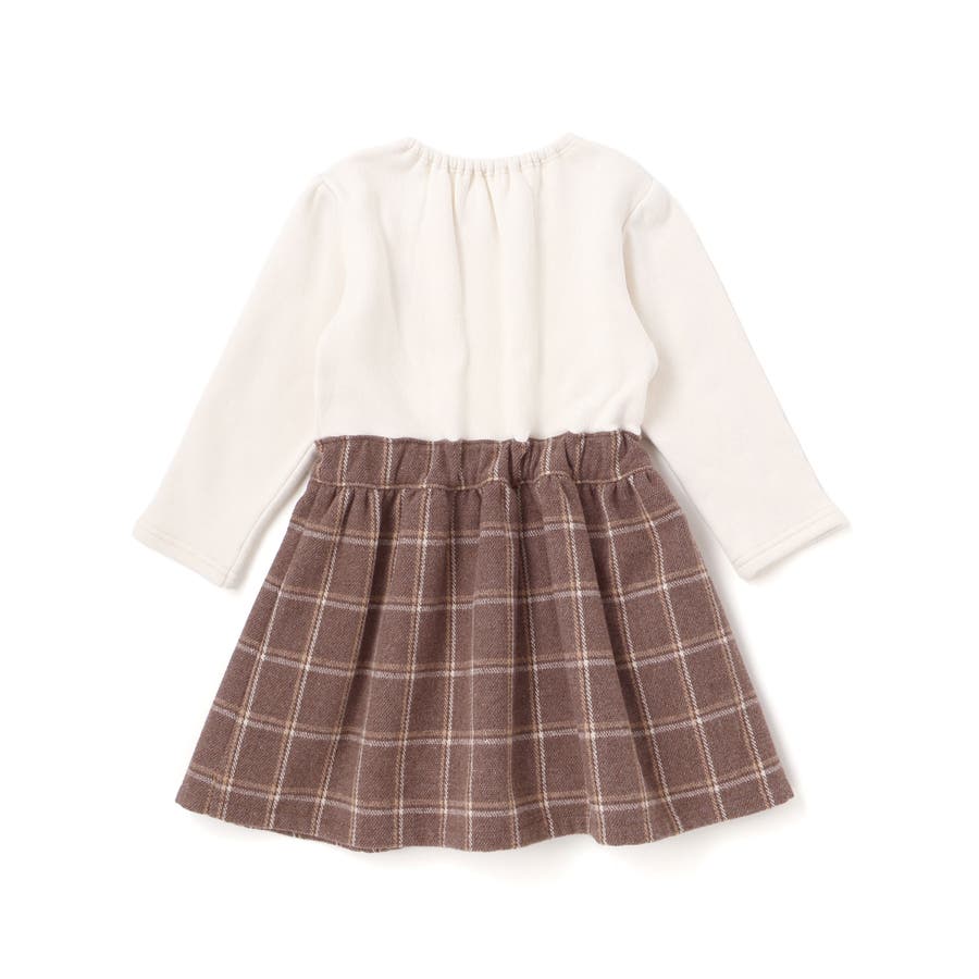 上品なトラッドテイストと女の子らしい可愛さをひとつにした、ドッキングデザインの長袖ワンピース。