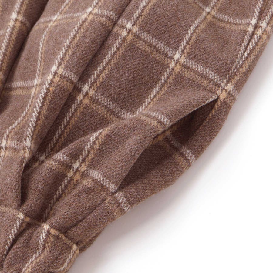 切り替え下のスカート部分は、ツイード調のチェック生地を使用した上品なプリーツ仕立てのお呼ばれスタイルです。