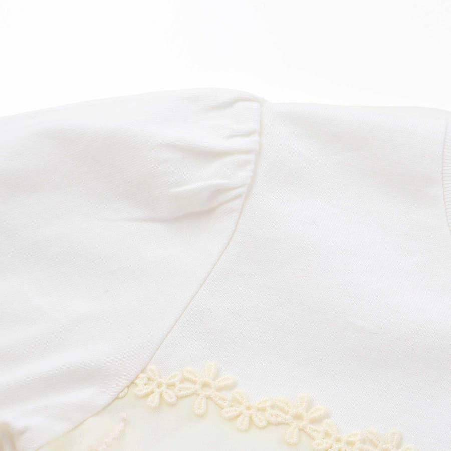 | 素材 | (上身頃)綿100% 【レース部分】 (基布)ナイロン100% (刺繍糸)綿100% (リブ)綿91% ポリウレタン9% 【スカート部分】 (表側)ナイロン100% 【内側】 (基布)ナイロン100% (刺繍糸)ポリエステル100% (裏側)ポリエステル100% |