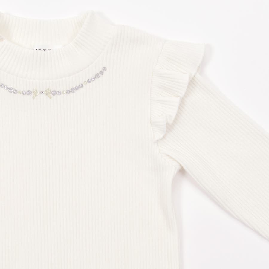 肩のフリルがカワイイ長袖Tシャツは1枚でもインパクトバッチリ。