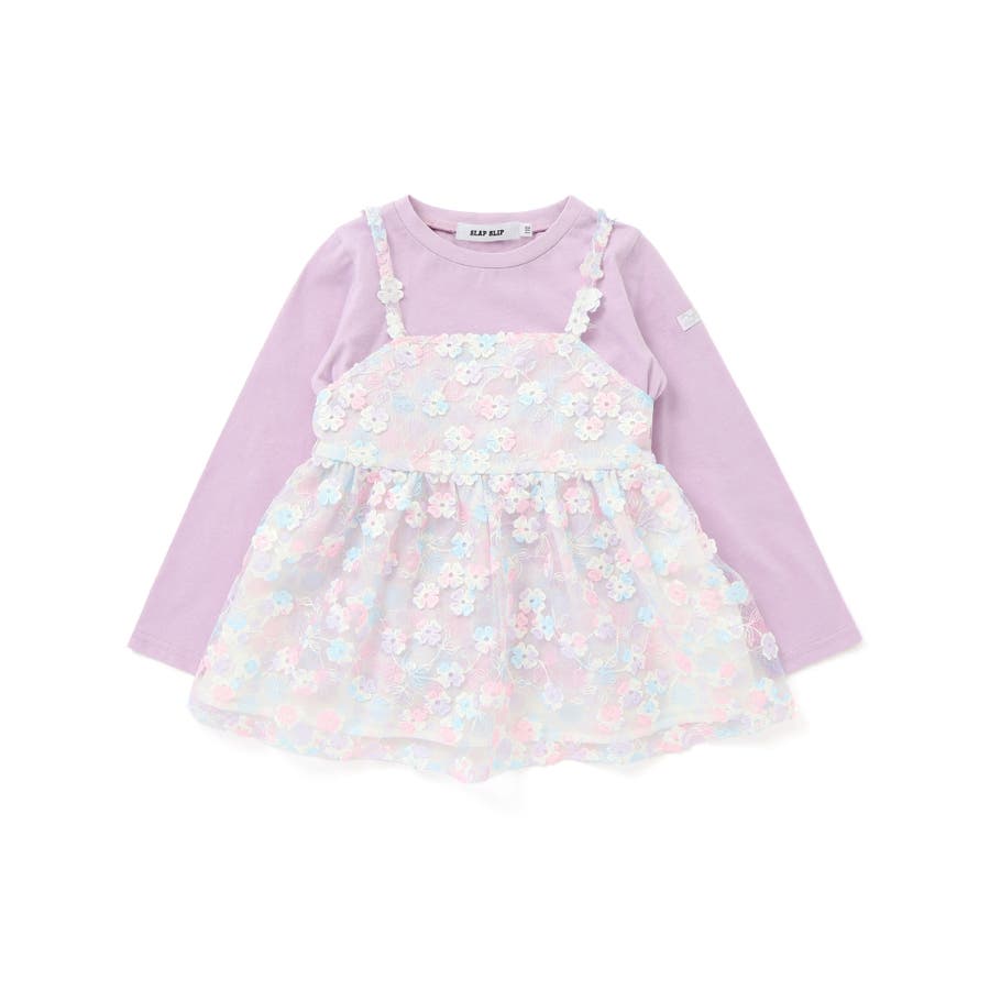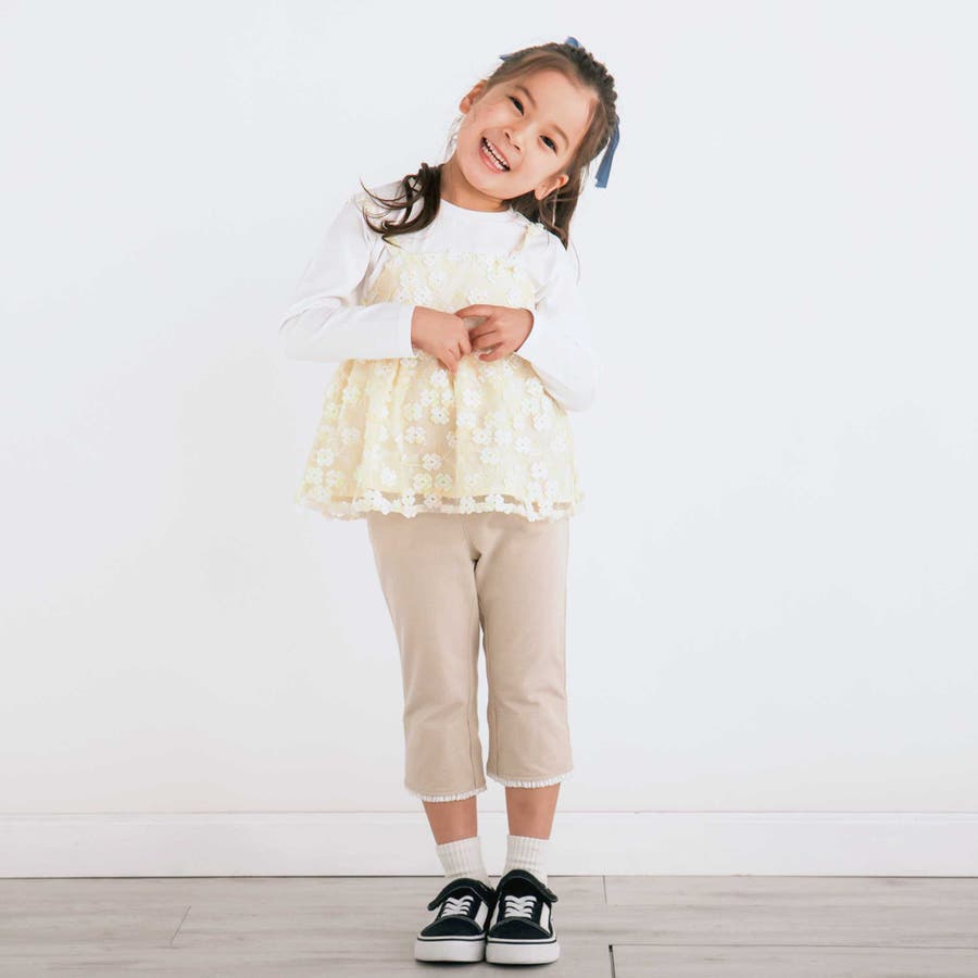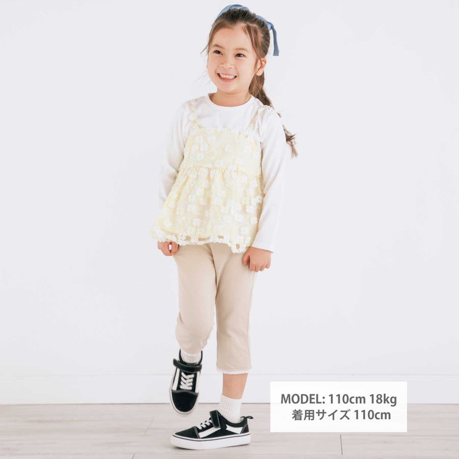 【お揃い】お花レースキャミ+天竺長袖Tシャツ2点セット(80~130cm)
