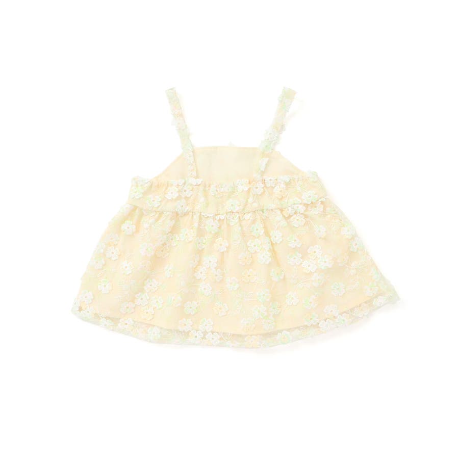 ホワイト×イエロー系は同じレースを使用したベビー用のセットアップ(1822-72002)もあるから姉妹・お友達とのオソロコーデもオススメです。
