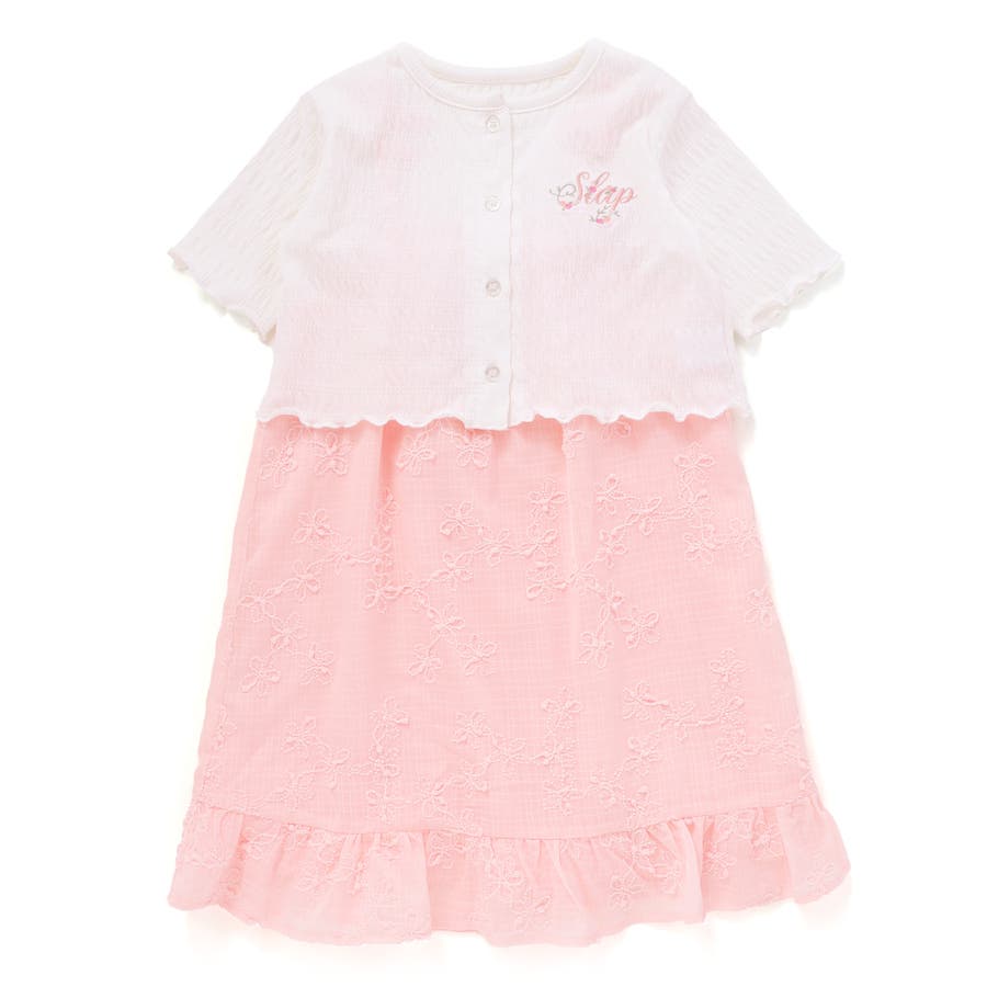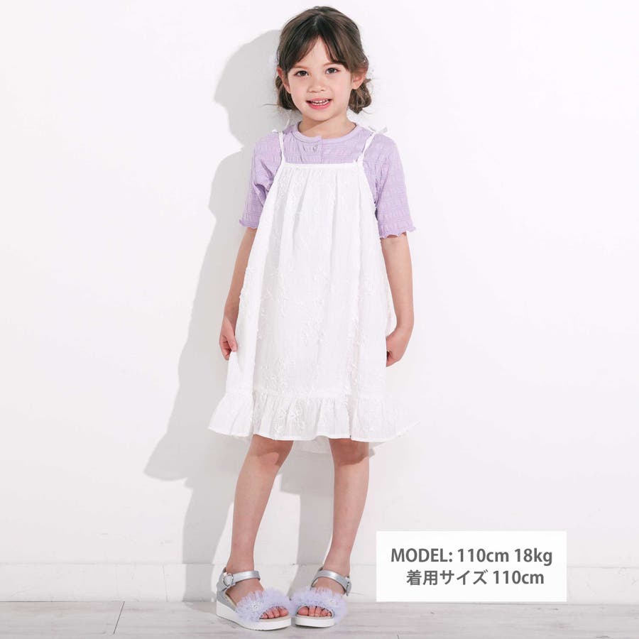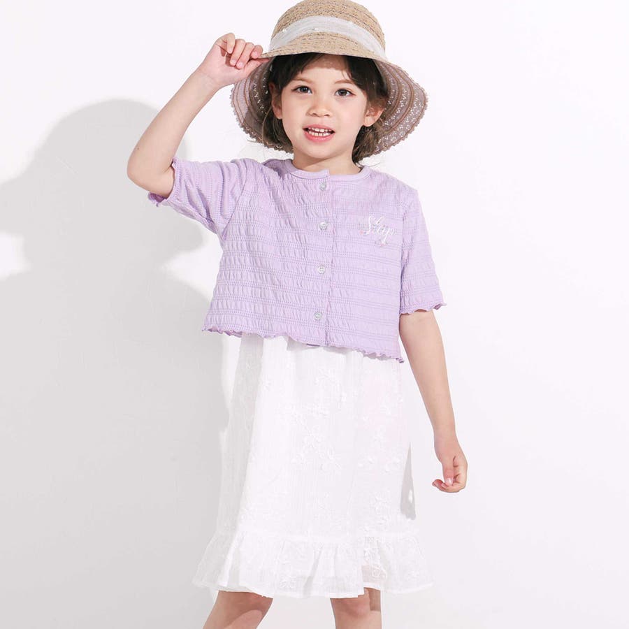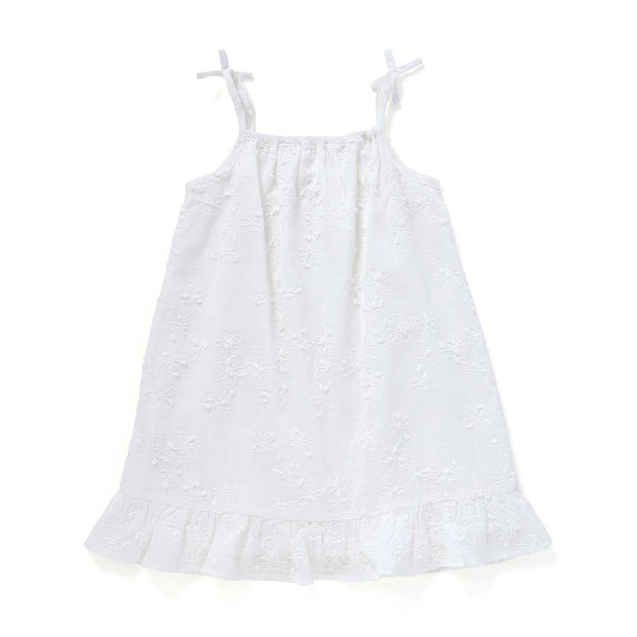 お花刺しゅうカーディガン+肩リボンキャミソールワンピース2点セット(90~130…