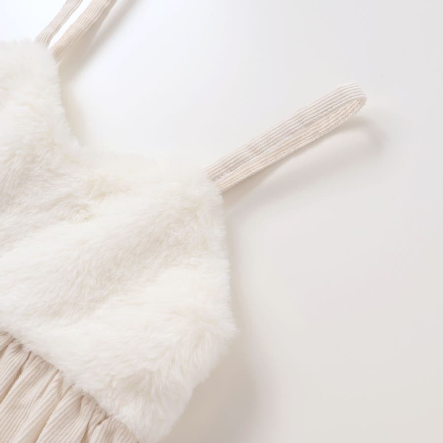 キャミソールは秋冬にぴったりなファーとコーデュロイを使用。