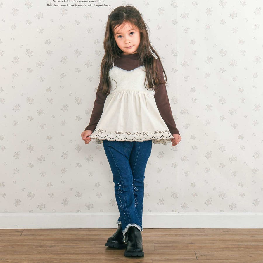 裾スカラップキャミソール+チャーム付きTシャツ2点セット(90~130cm)