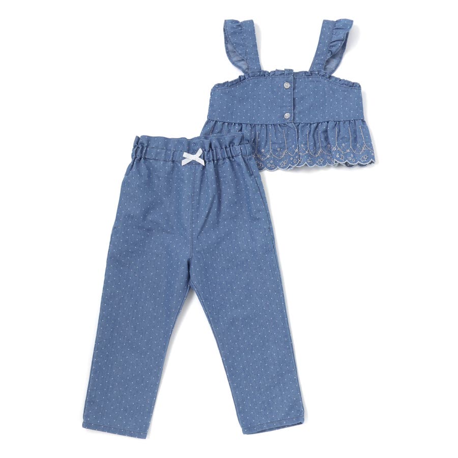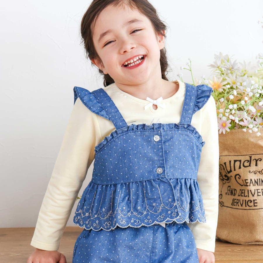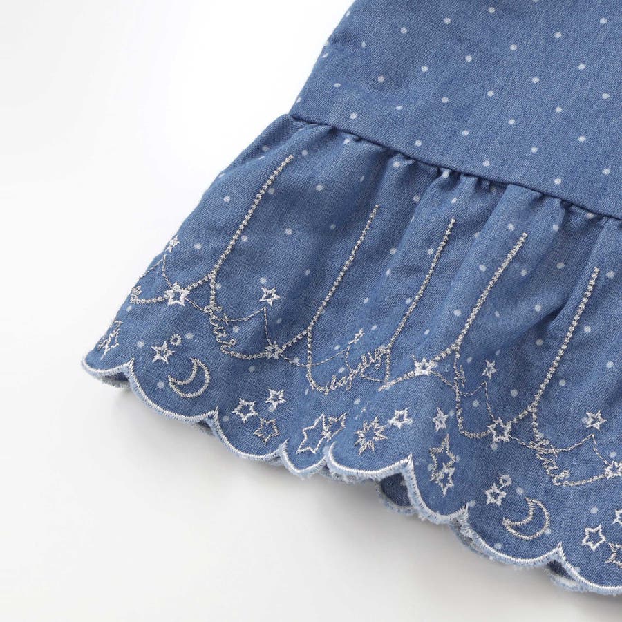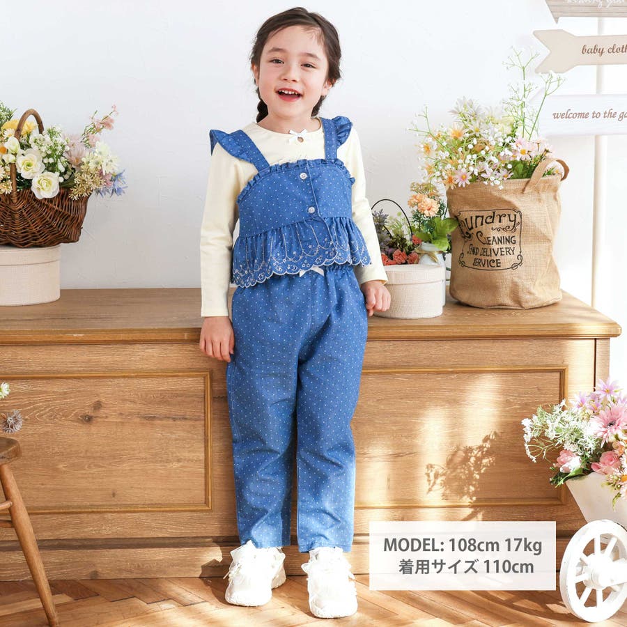 キラキラ刺しゅう裾スカラップ無地ドットライトオンスデニムセットアップ(90~13…