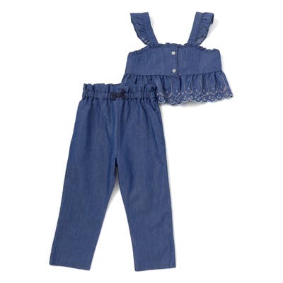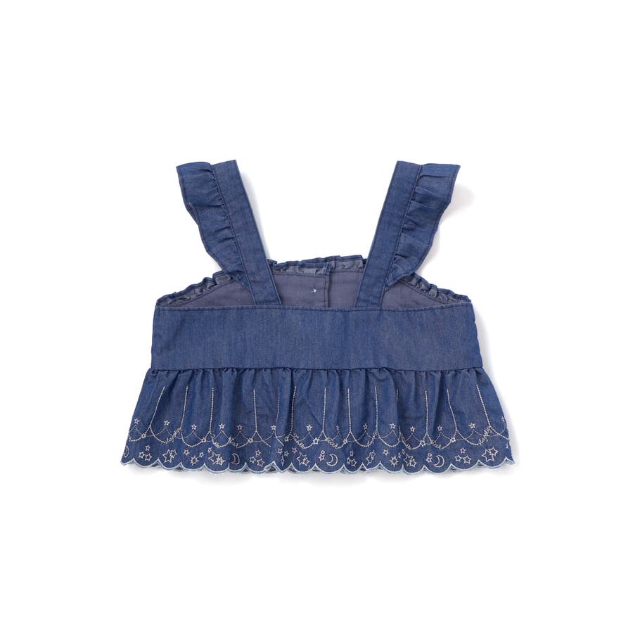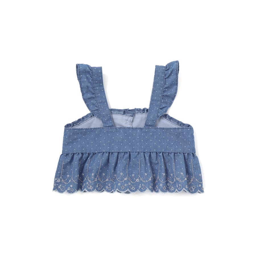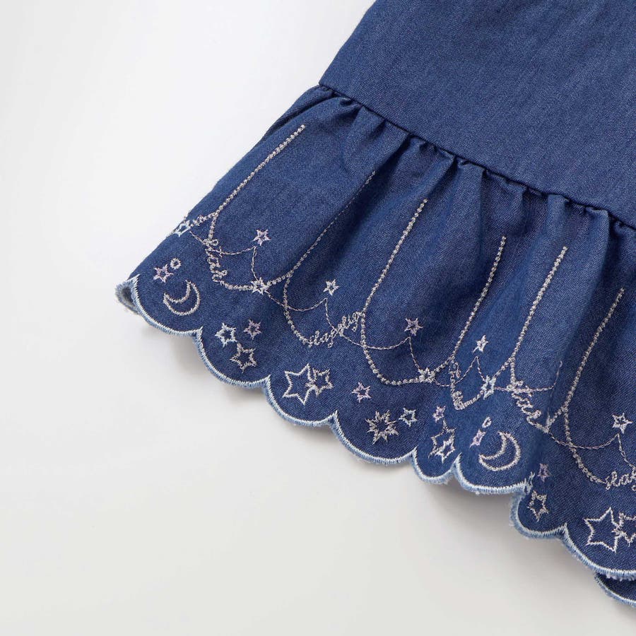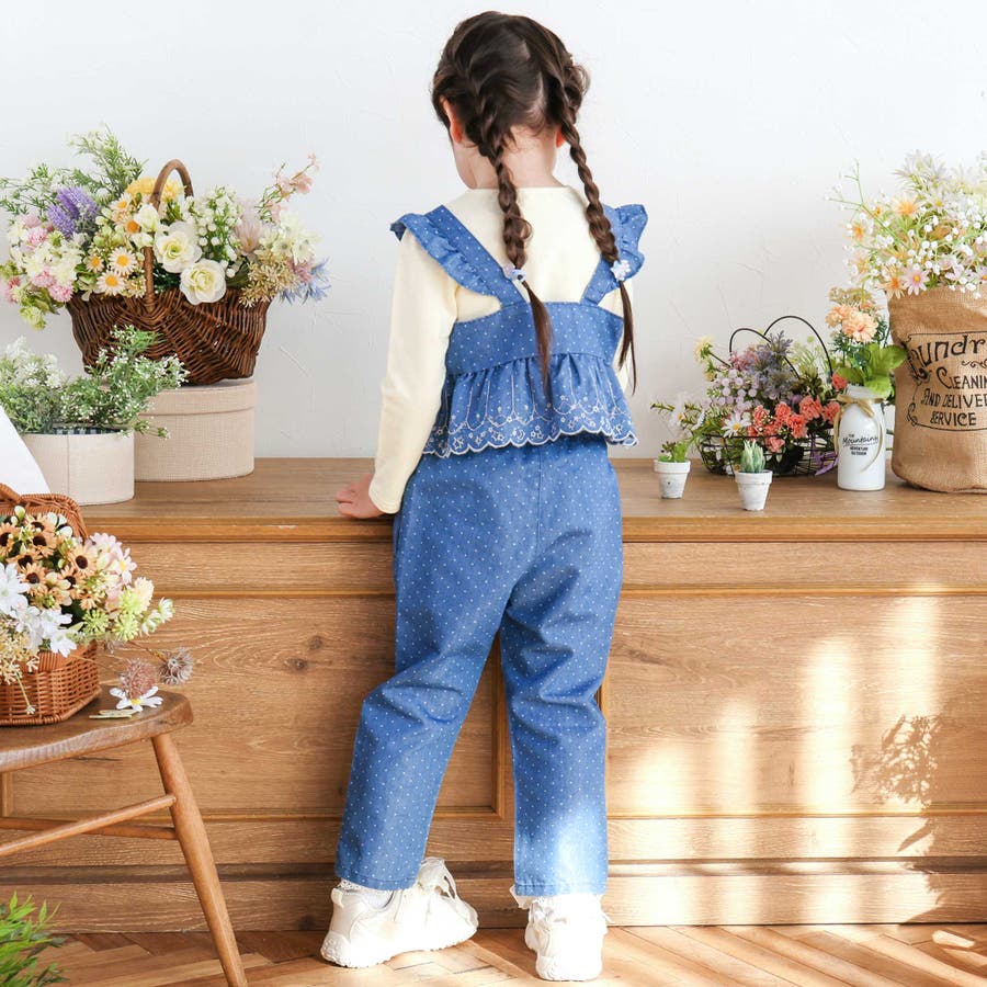 キラキラ刺しゅう裾スカラップ無地ドットライトオンスデニムセットアップ(90~13…