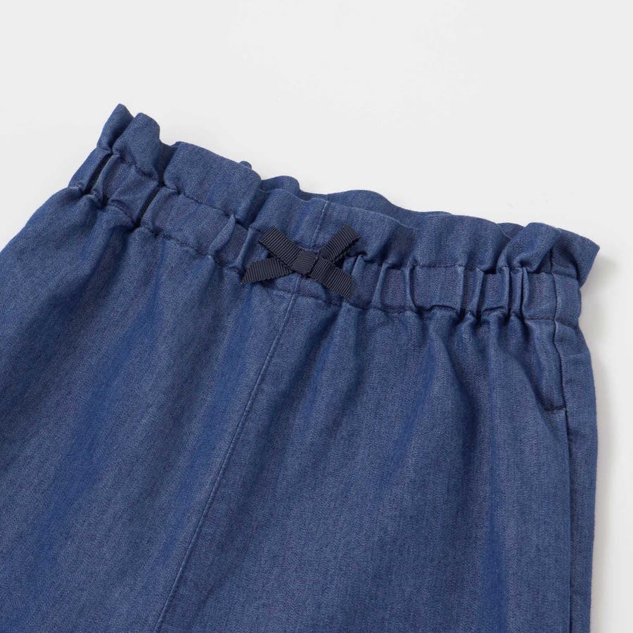パンツはウエストにリボンを添えて、トップスとのバランスも可愛くまとまるデザインです。
