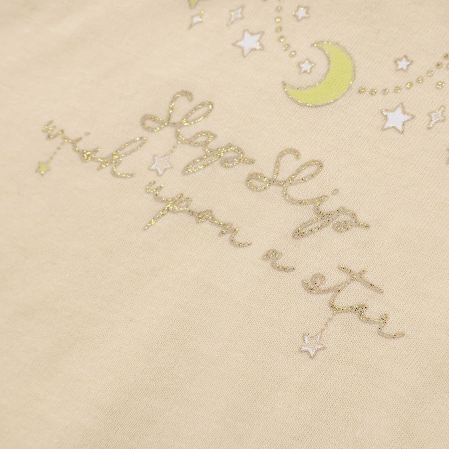 胸元には月とお星さまのモチーフをデザインした長袖Tシャツ。