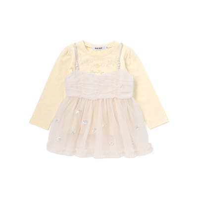 女の子が大好きな“きらきら”をぎゅっとつめこんだ、長袖Tシャツとキャミチュニックの2点セット。