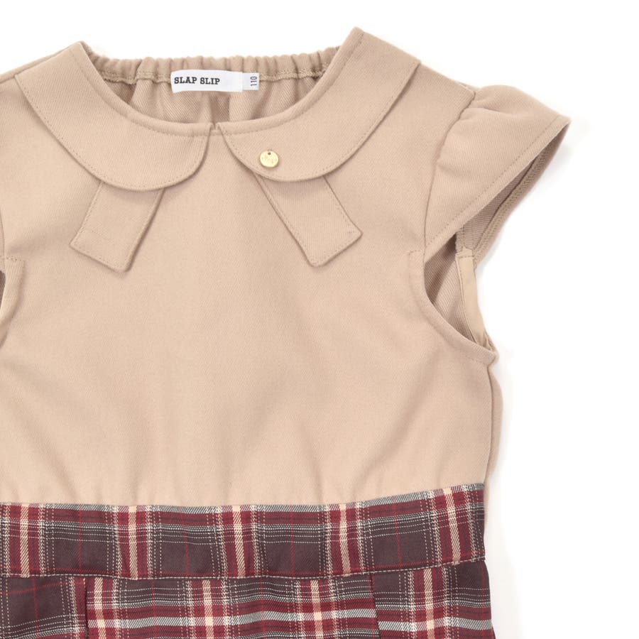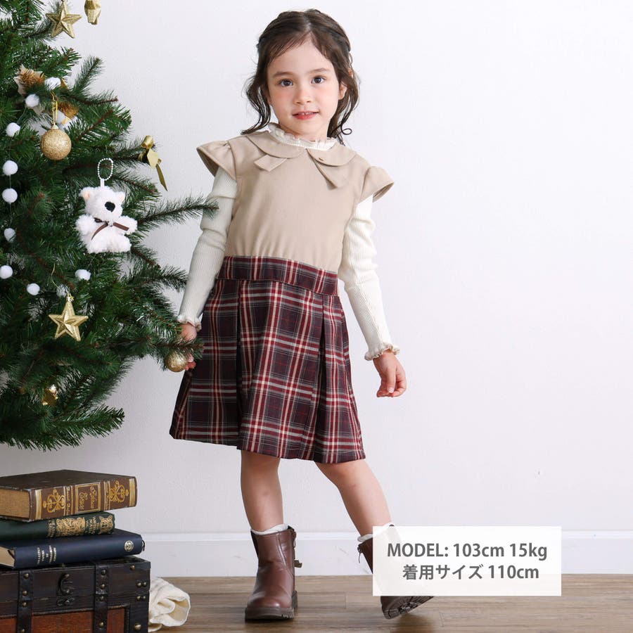【お揃い】リボン風襟付き肩あきチェックタック入りジャンパースカート(80~140…