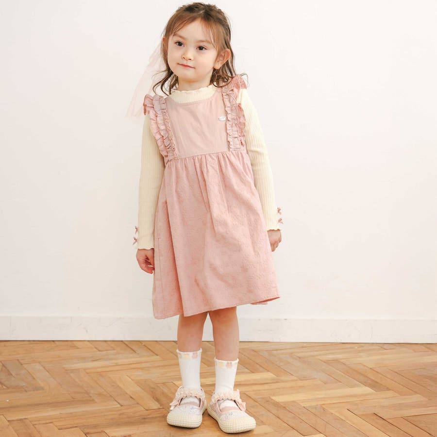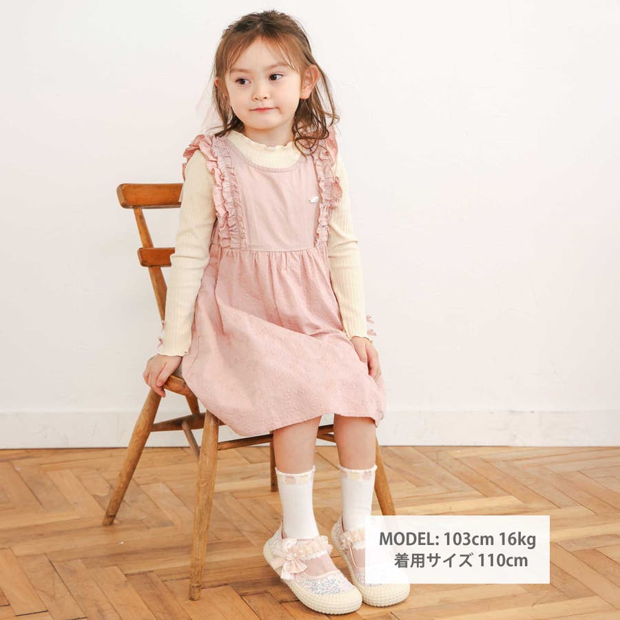 肩フリル花柄レースジャンパースカート(80~130cm)