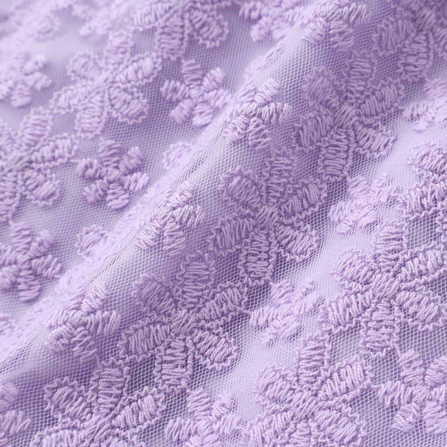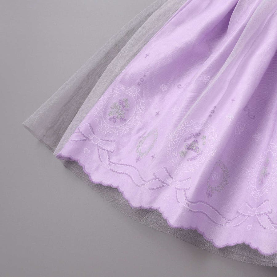 | 素材 | (上身頃)(表側)ナイロン100% 刺繍糸:綿100% レース:ポリエステル100% (裏)ポリエステル100% (スカート部分)ポリエステル100% 刺繍糸:ポリエステル100% (チュール部分) ナイロン100% |
