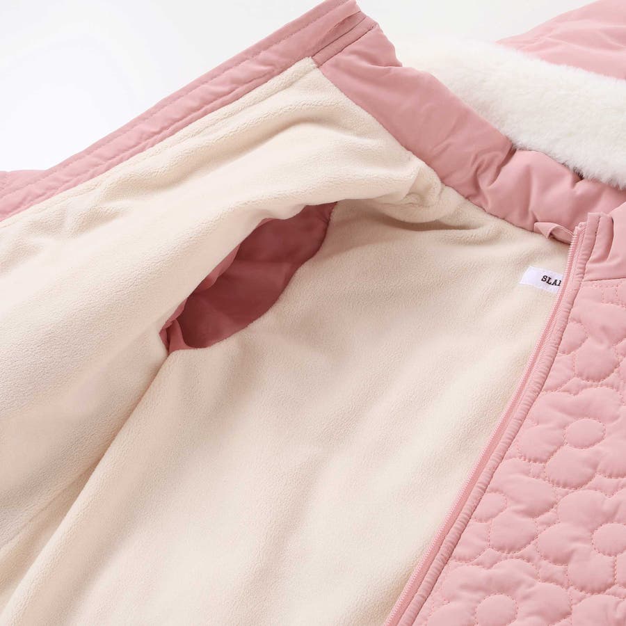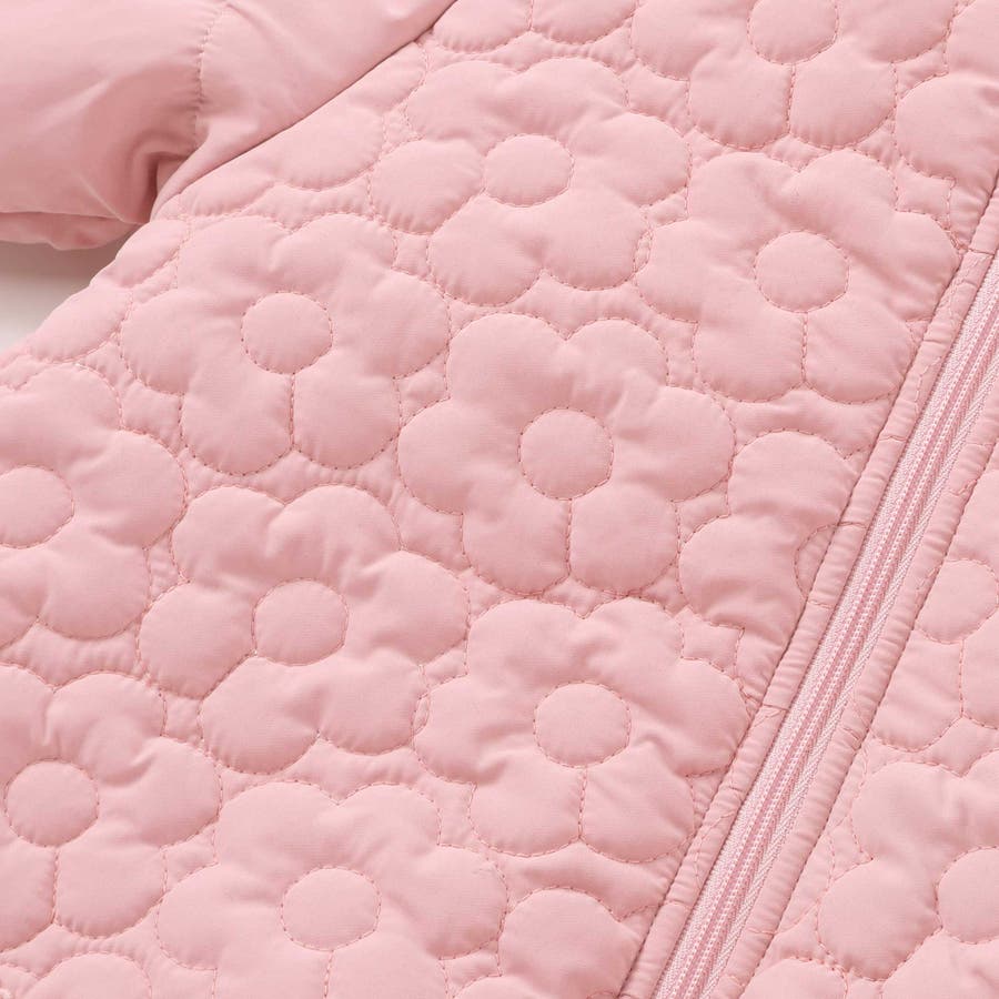 寒い季節にぴったりの、女の子用中綿キルトジャケット。