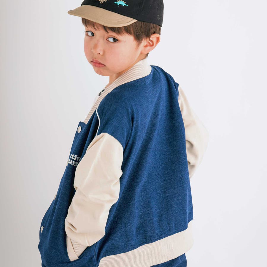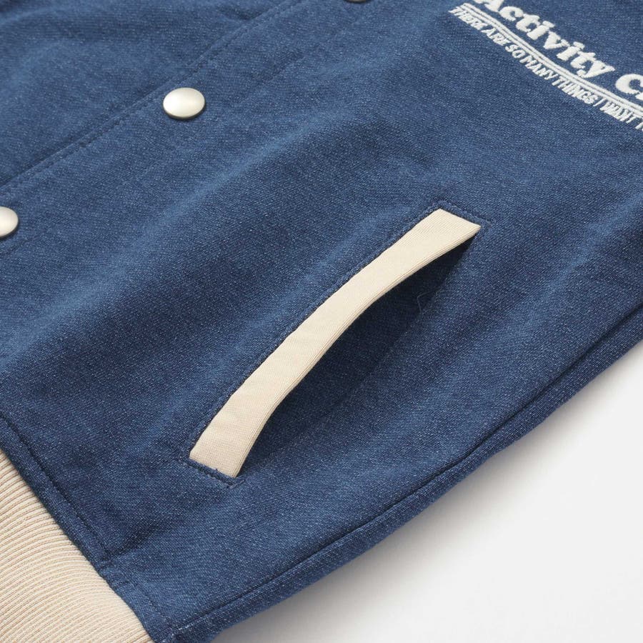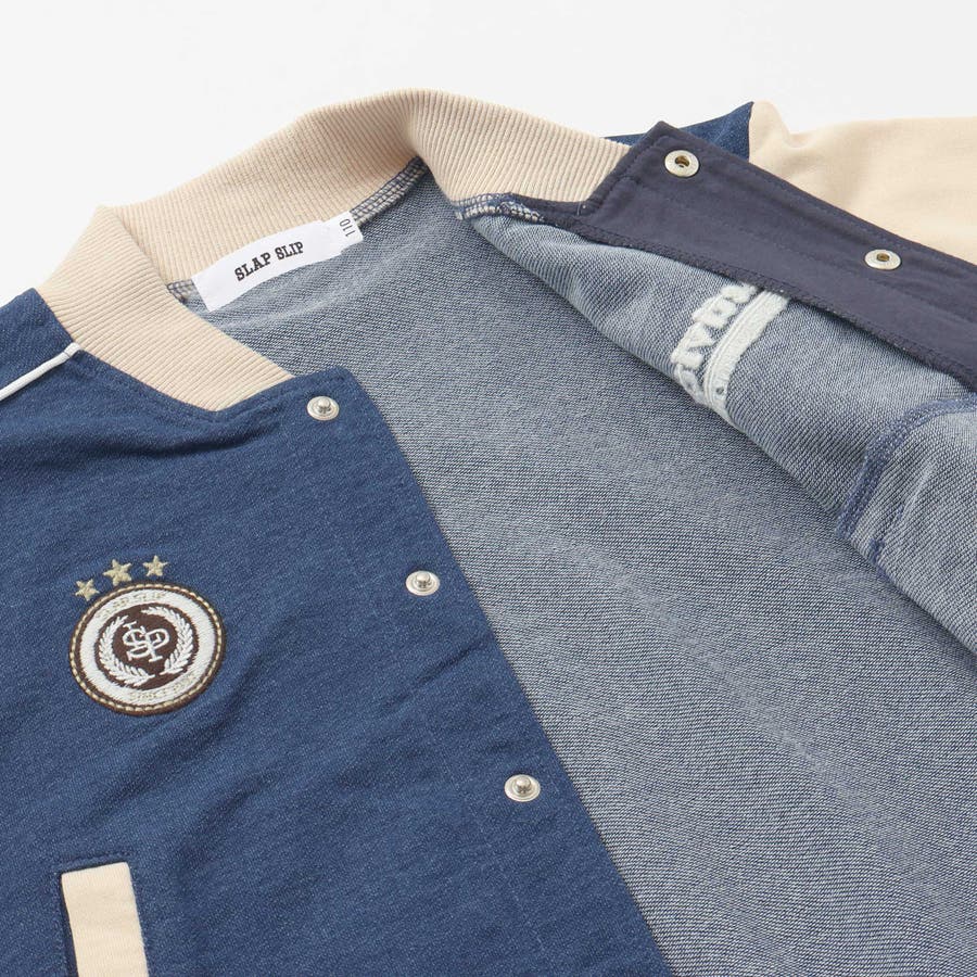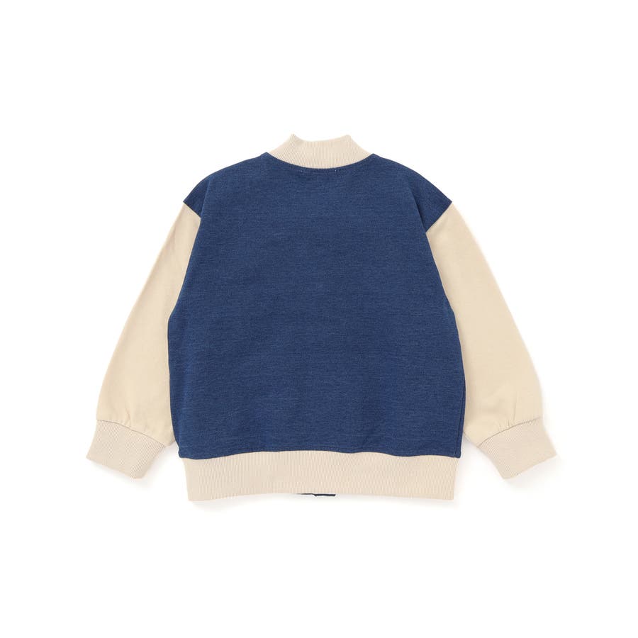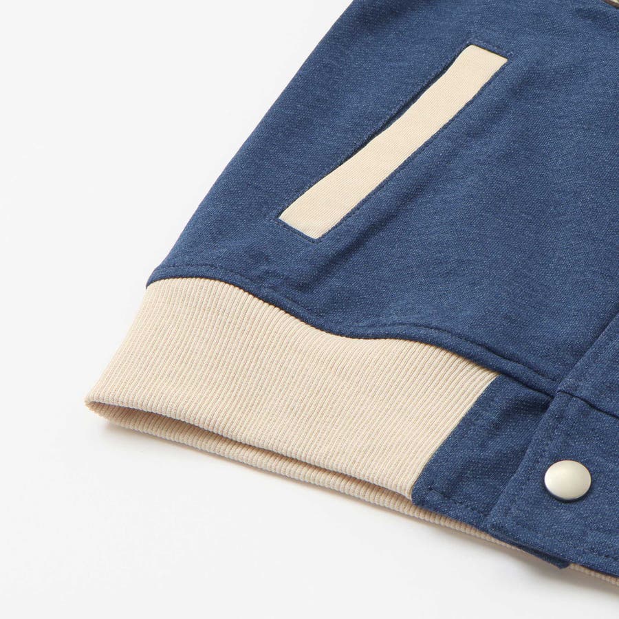 【お揃い】バイカラーデニムニットスウェットスタジャン(80~130cm)
