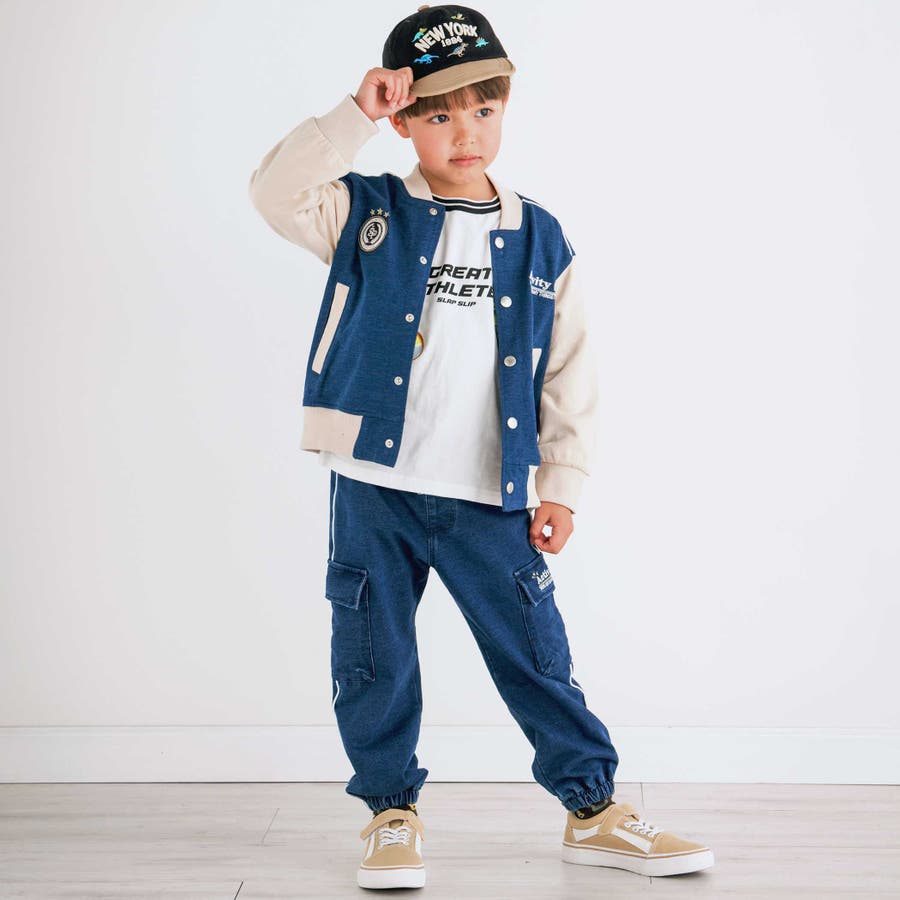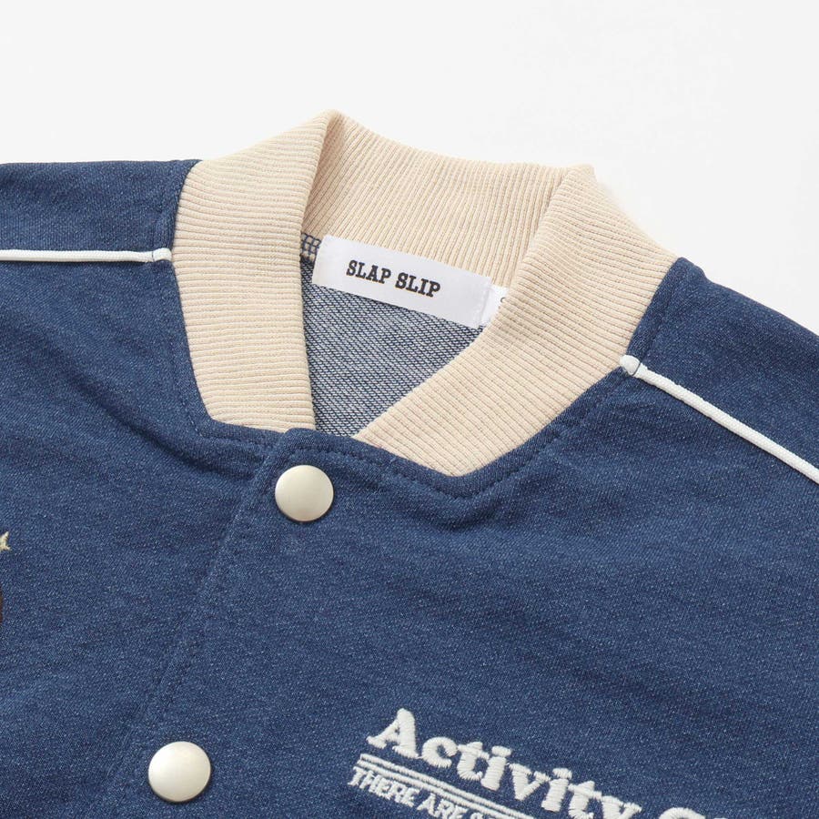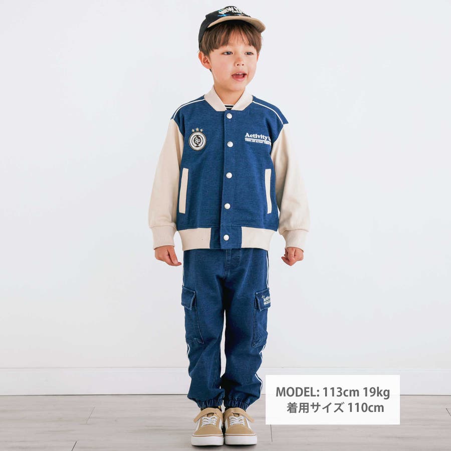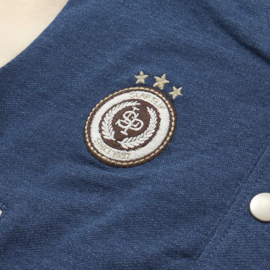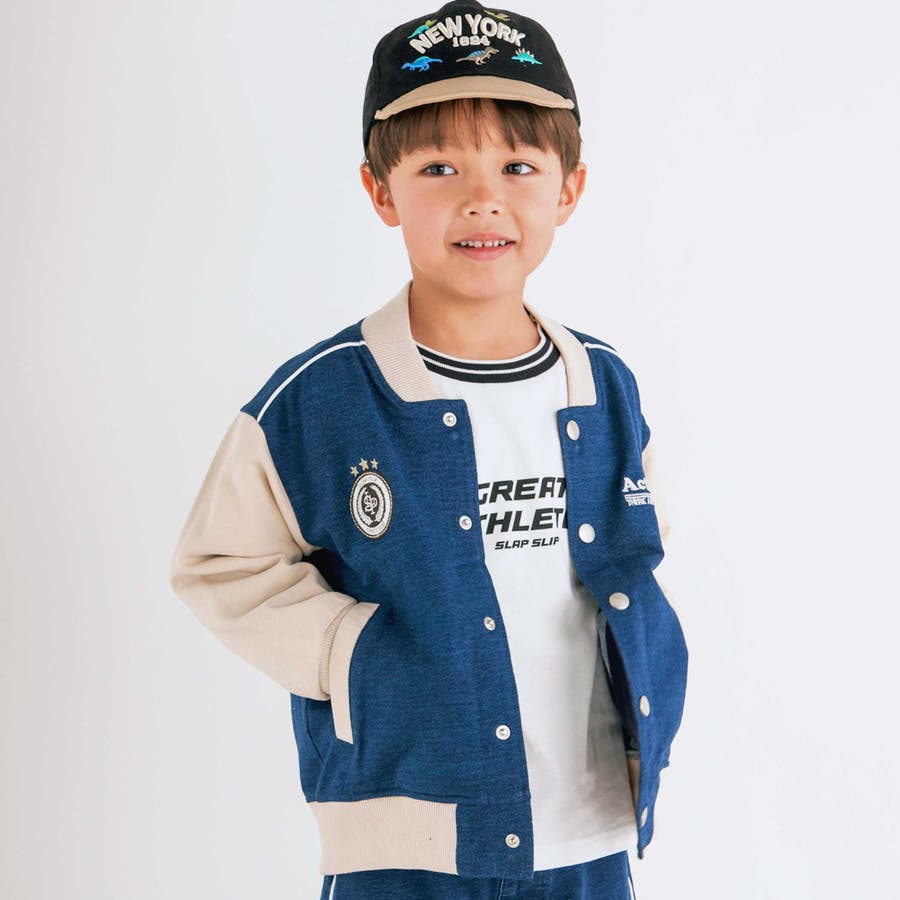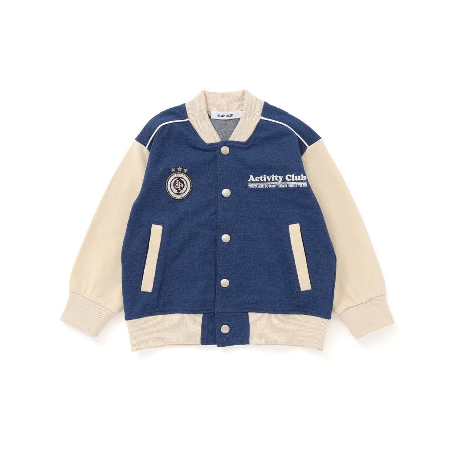 【お揃い】バイカラーデニムニットスウェットスタジャン(80~130cm)