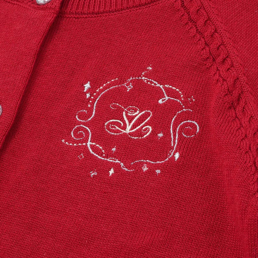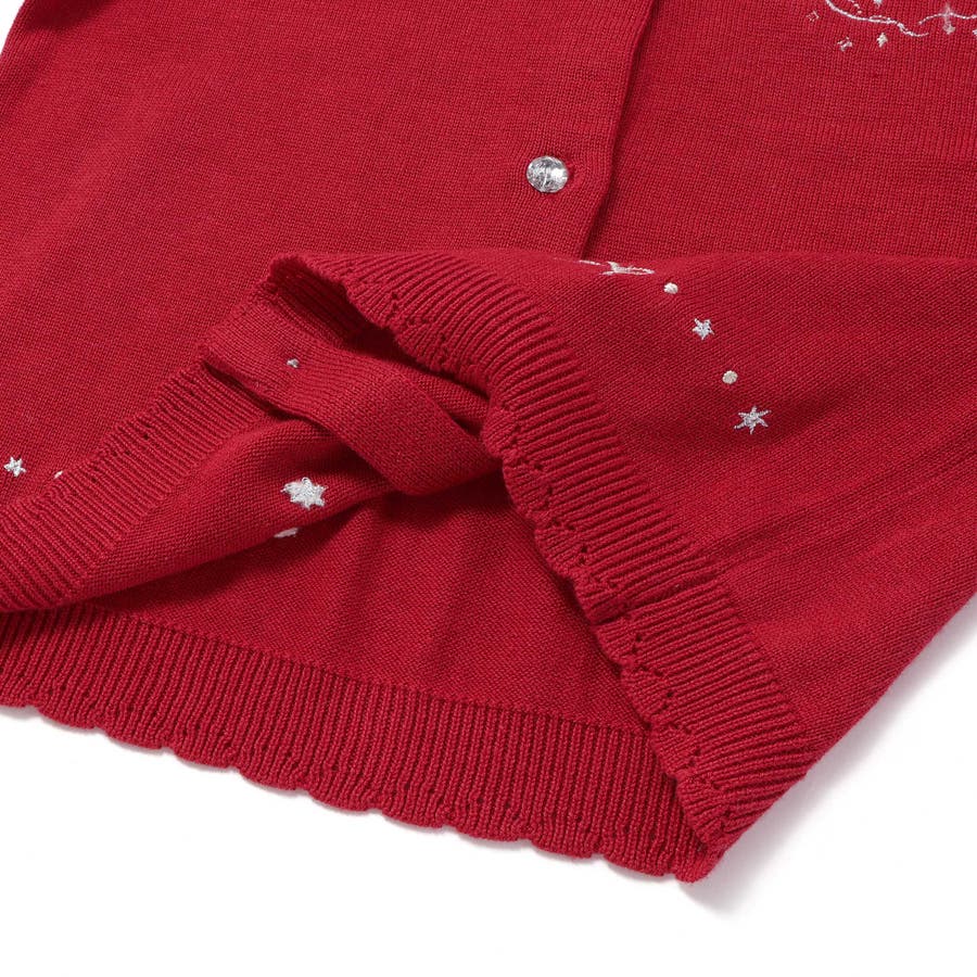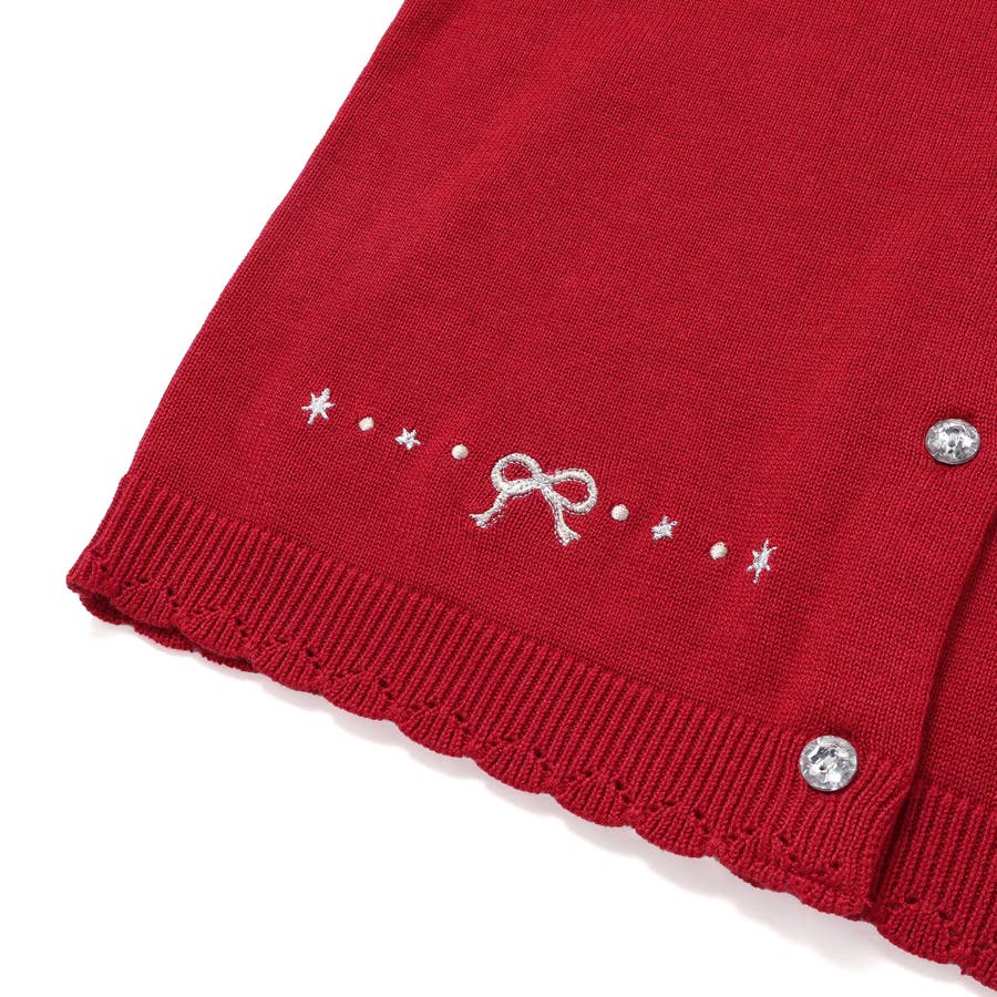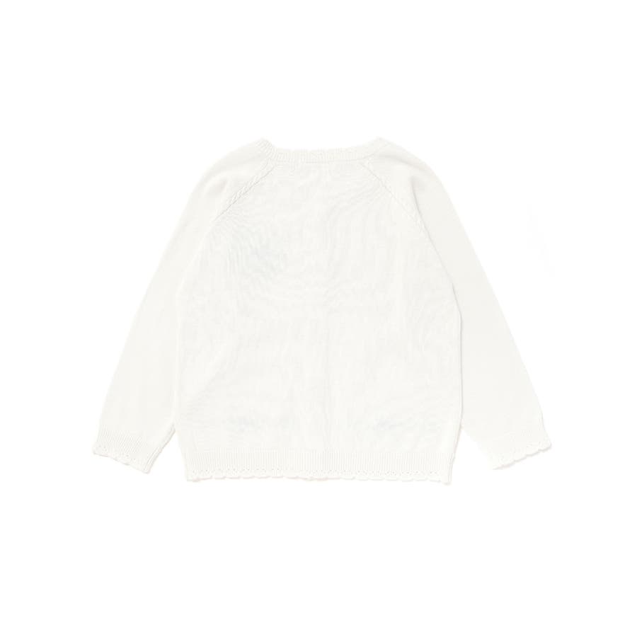 裾口や袖口のスカラップがキュートな女の子用の長袖カーディガン。