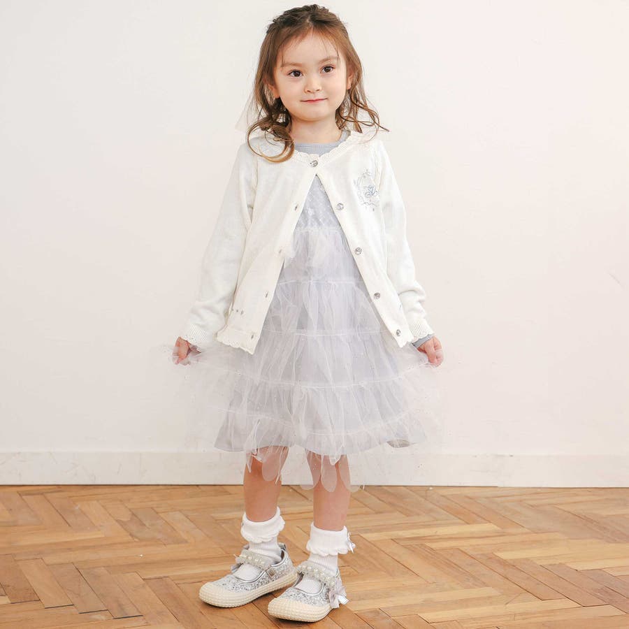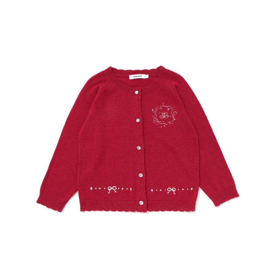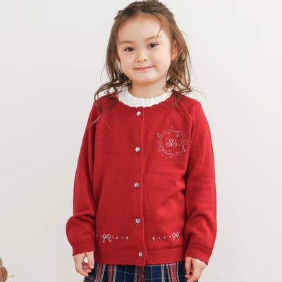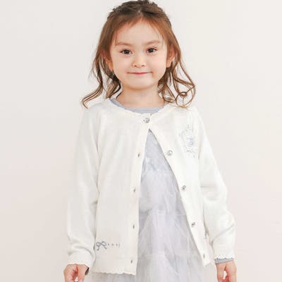 ジュエル風ボタン縁スカラップニットカーディガン(90~130cm)