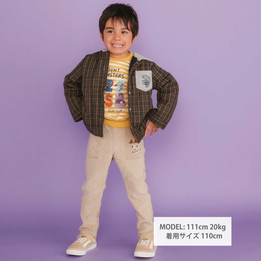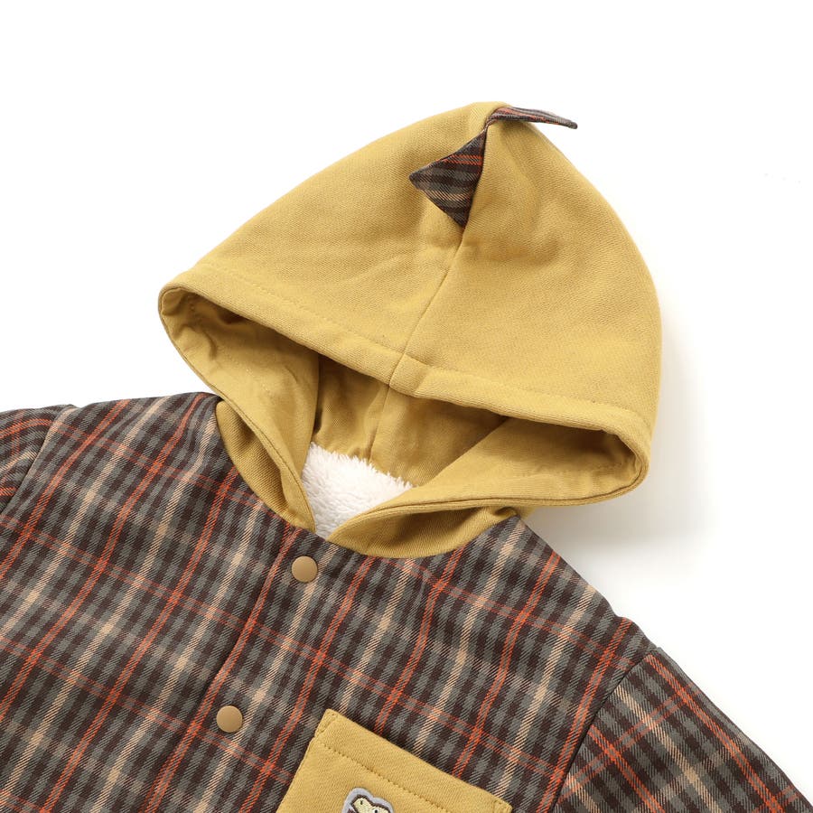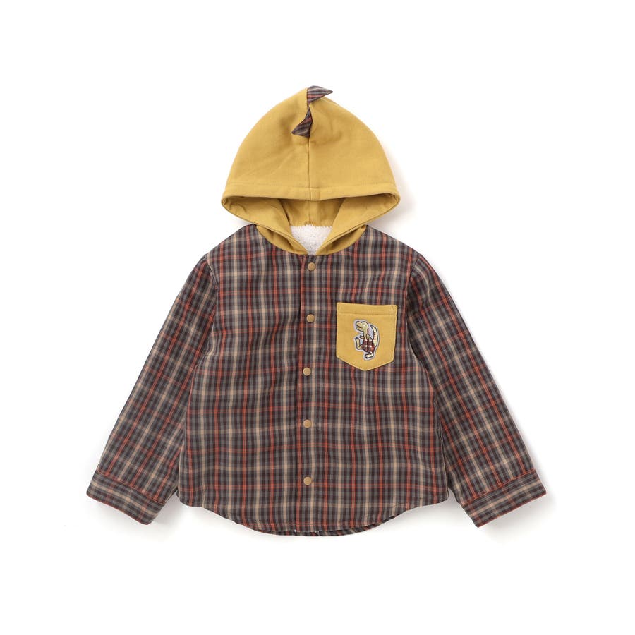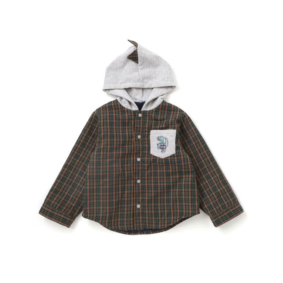 【リバーシブル】ツンツン恐竜トサカフード付きチェックボアジャケット(80~130…