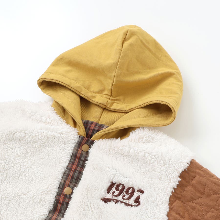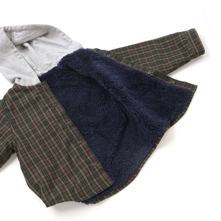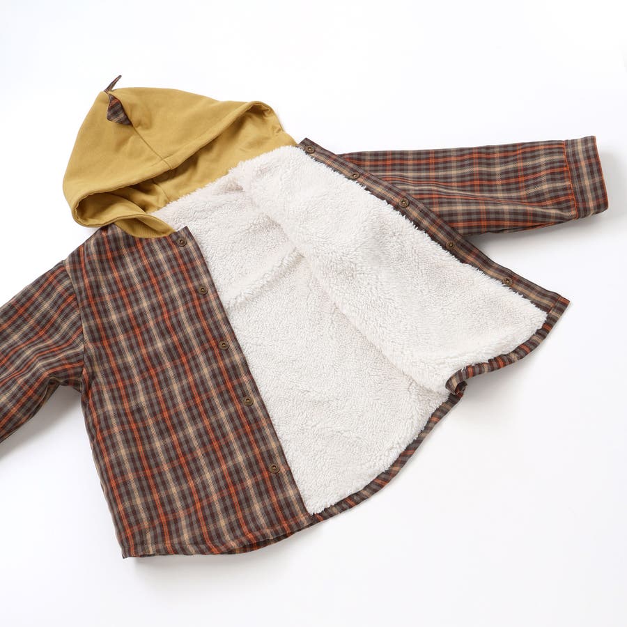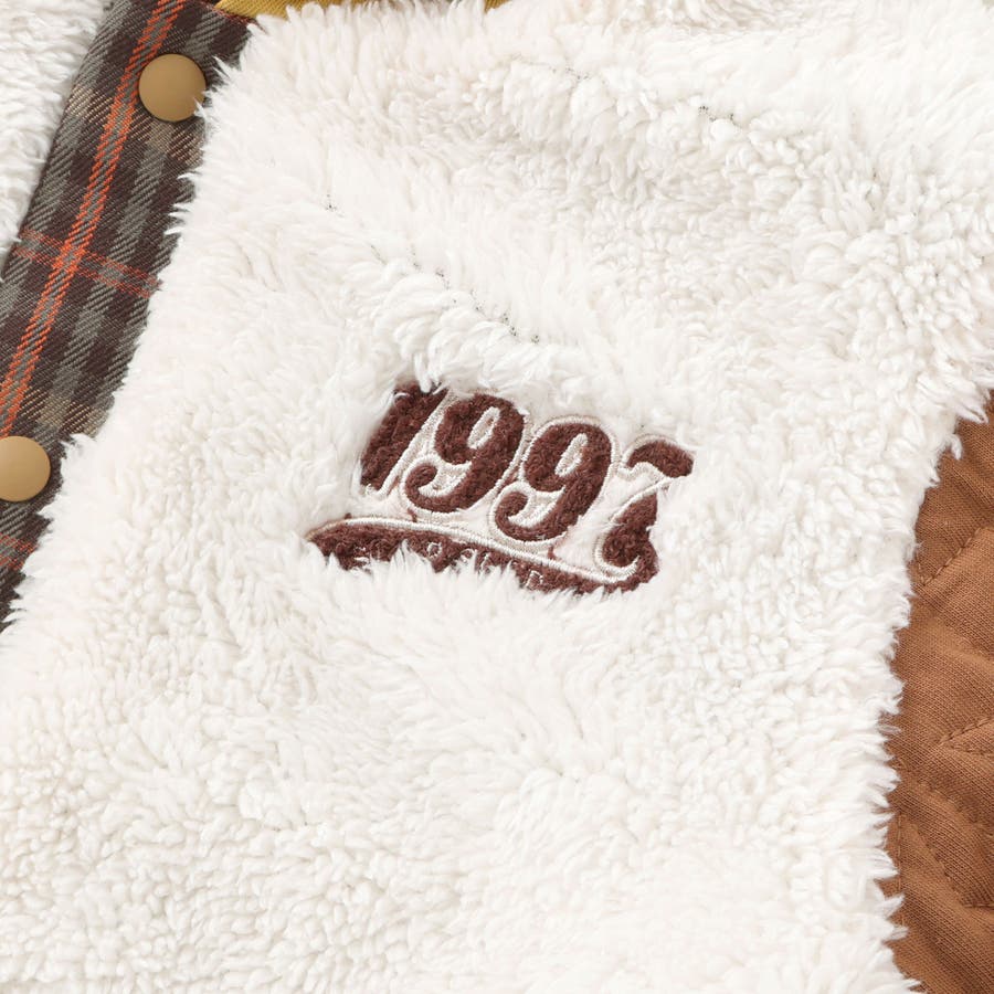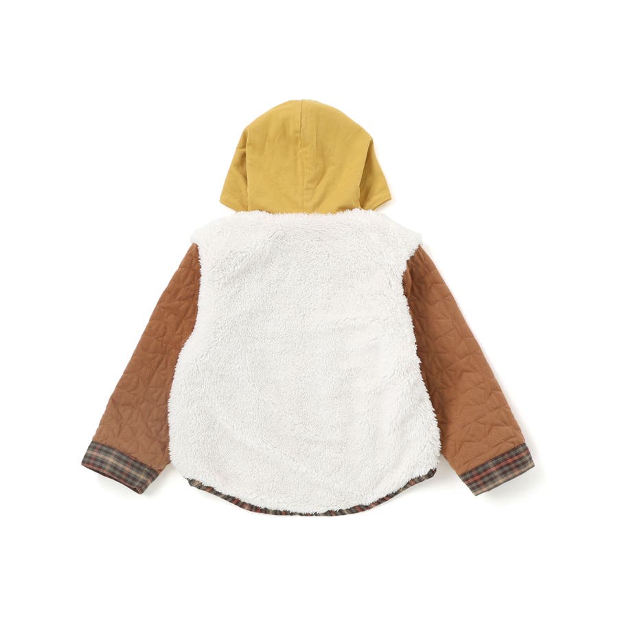 | 素材 | (チェック部分) ポリエステル100% ボア:ポリエステル100% (キルト部分)表側:綿60% ポリエステル40% 中わた:ポリエステル100% (フード部分)綿60% ポリエステル40% |