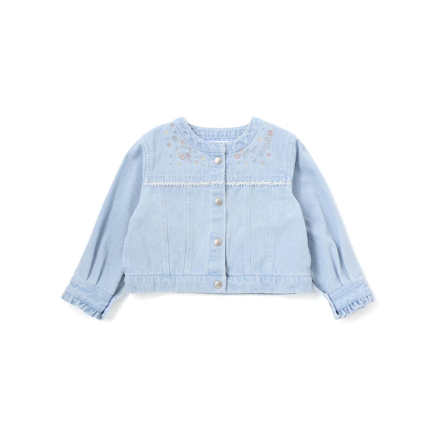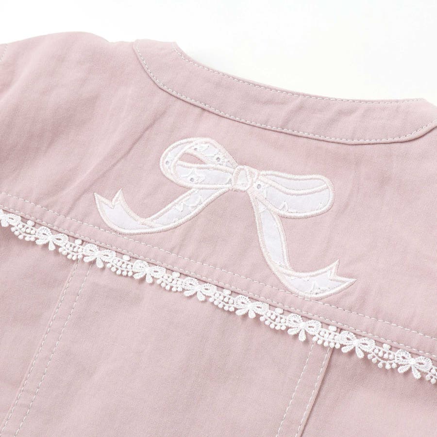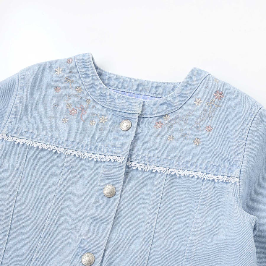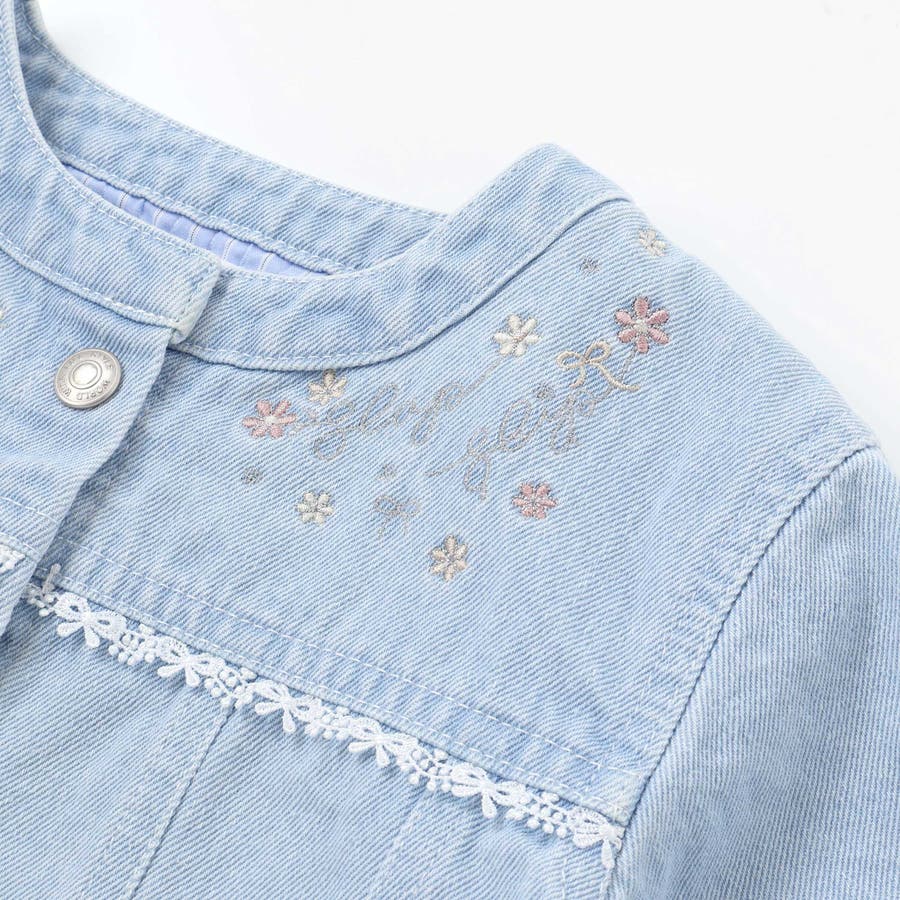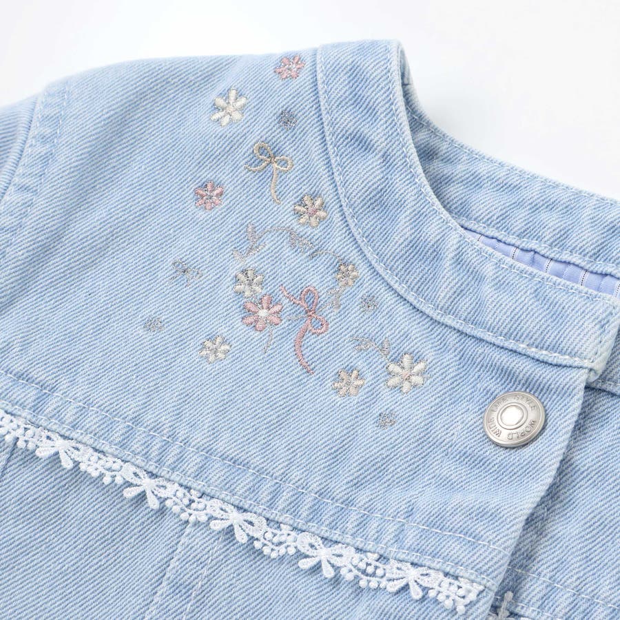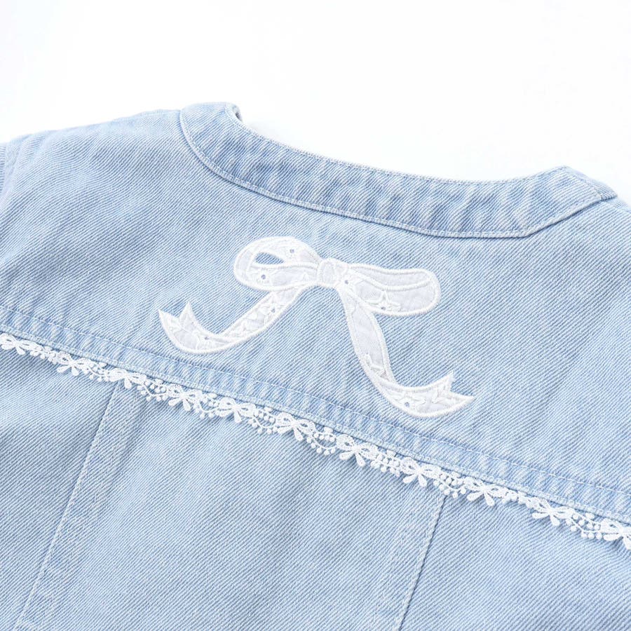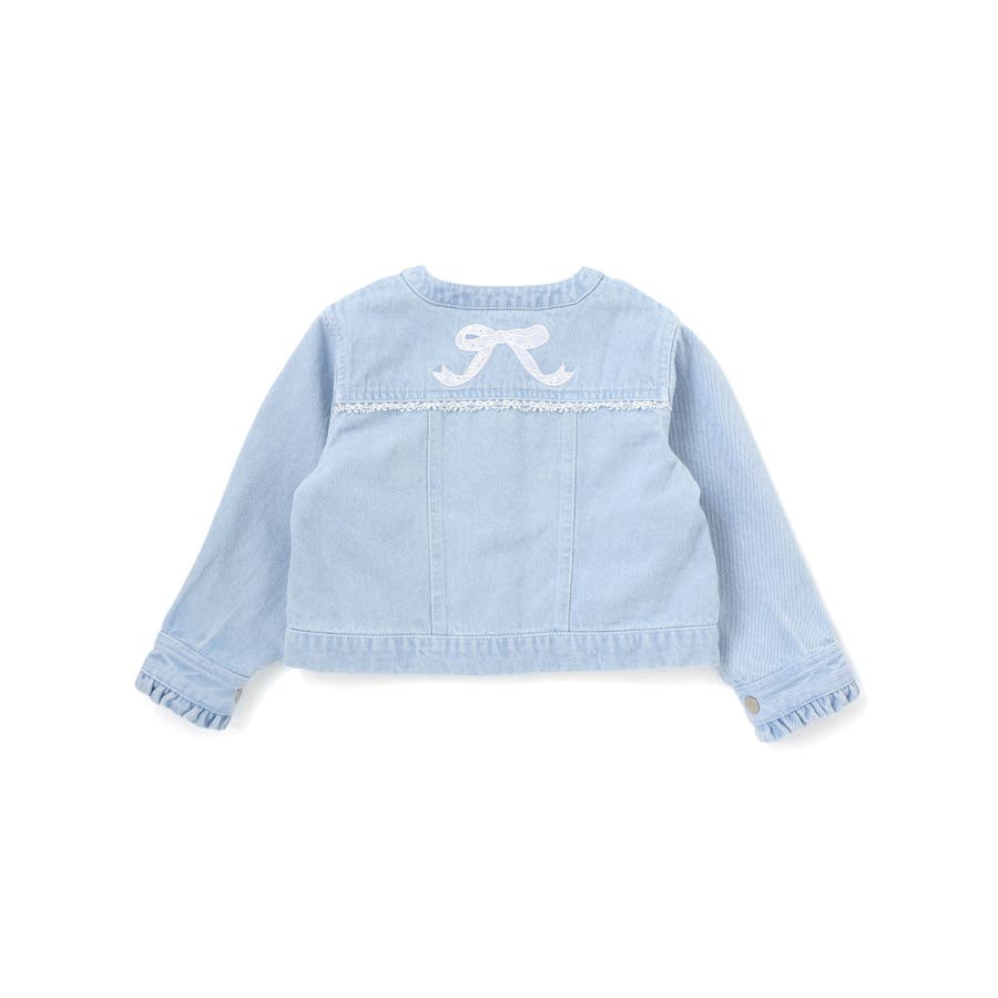 ツイルデニム後ろリボンレース刺しゅう入りノーカラージャケット(90~130cm)