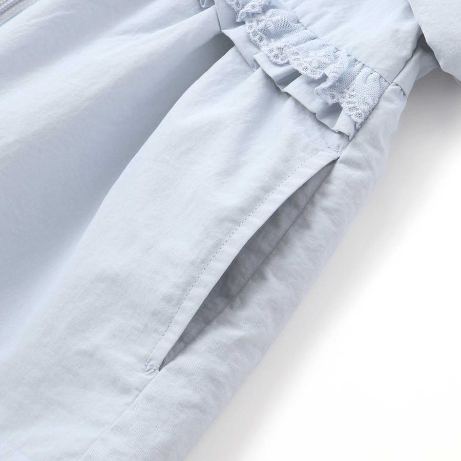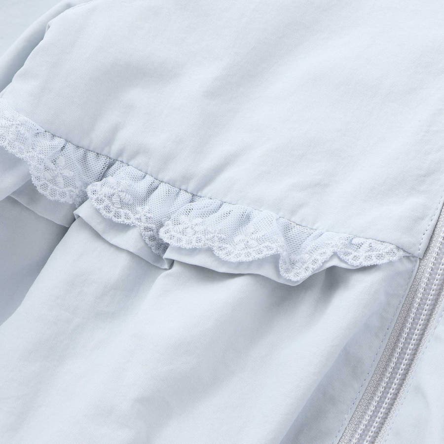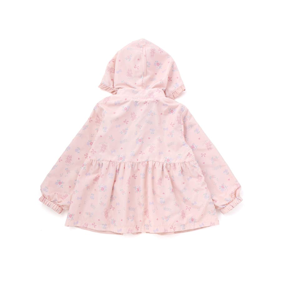 フードの端にはフリルをあしらい、後ろ姿までキュートに。