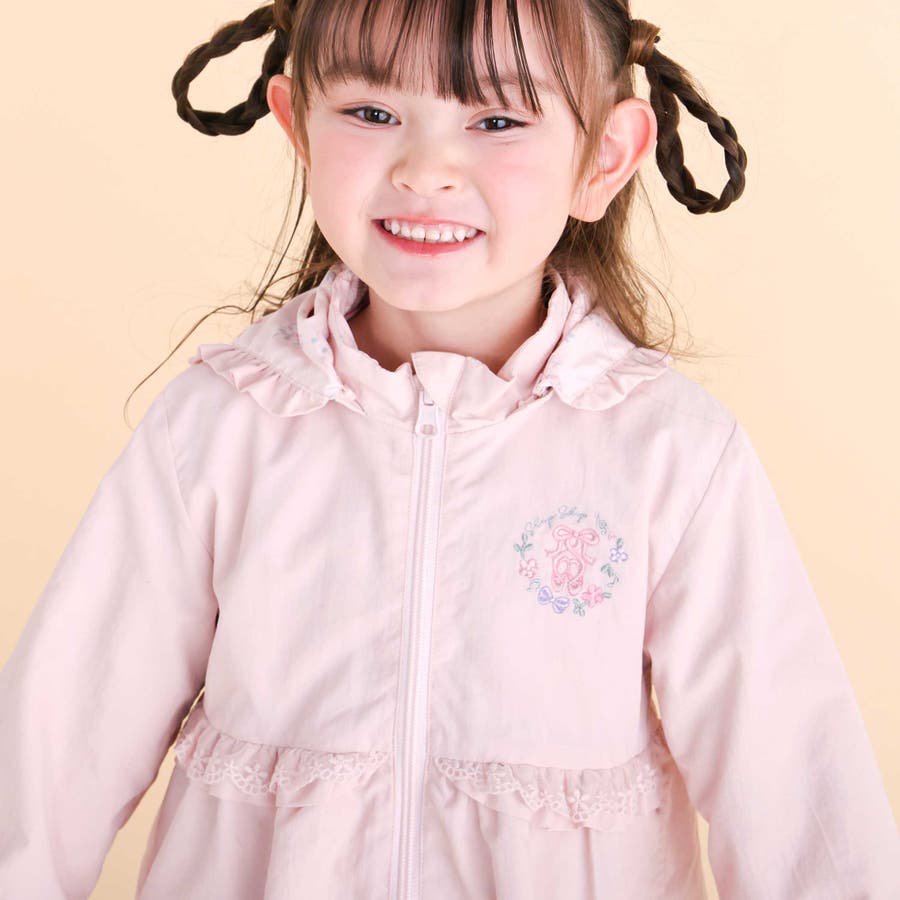 リボンやお花の刺しゅうに、レースとフリルをあしらった女の子らしさ満点のタフタジャケット。