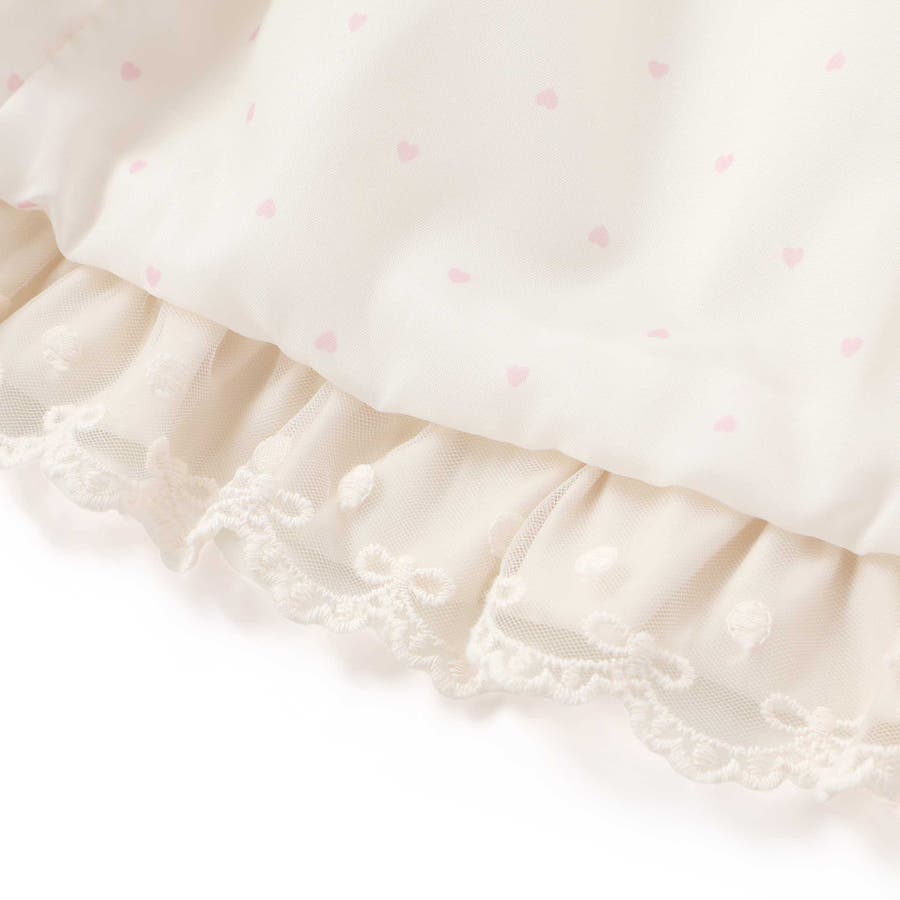 裏地はハート柄の総柄デザインで、見えない部分までこだわった一枚。