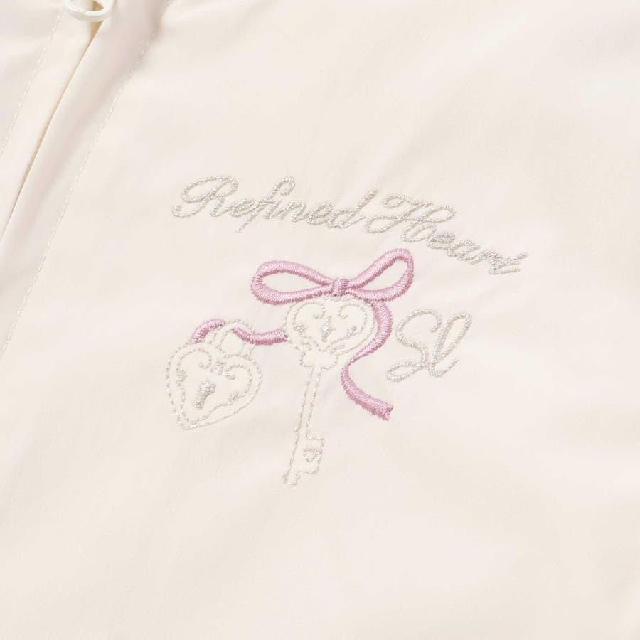 左胸元には、リボンとハート型の南京錠・カギモチーフの刺しゅうをあしらい、物語を感じさせるような愛らしいアクセントに。