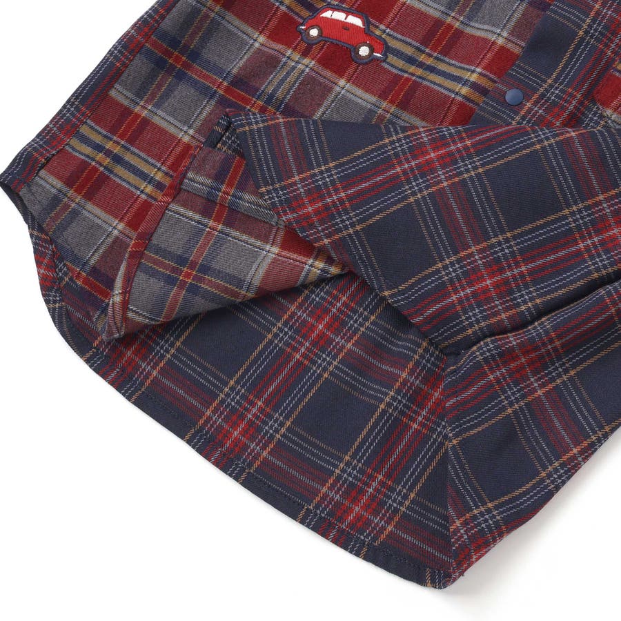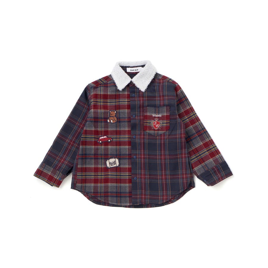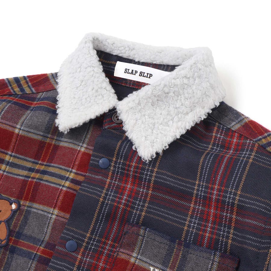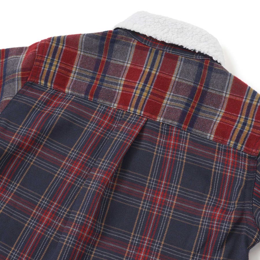 【お揃い】もこもこボア襟切り替えチェックシャツ(90~130cm)
