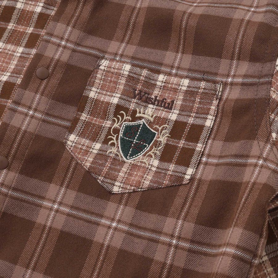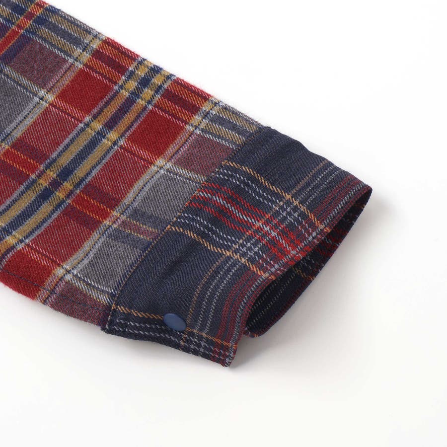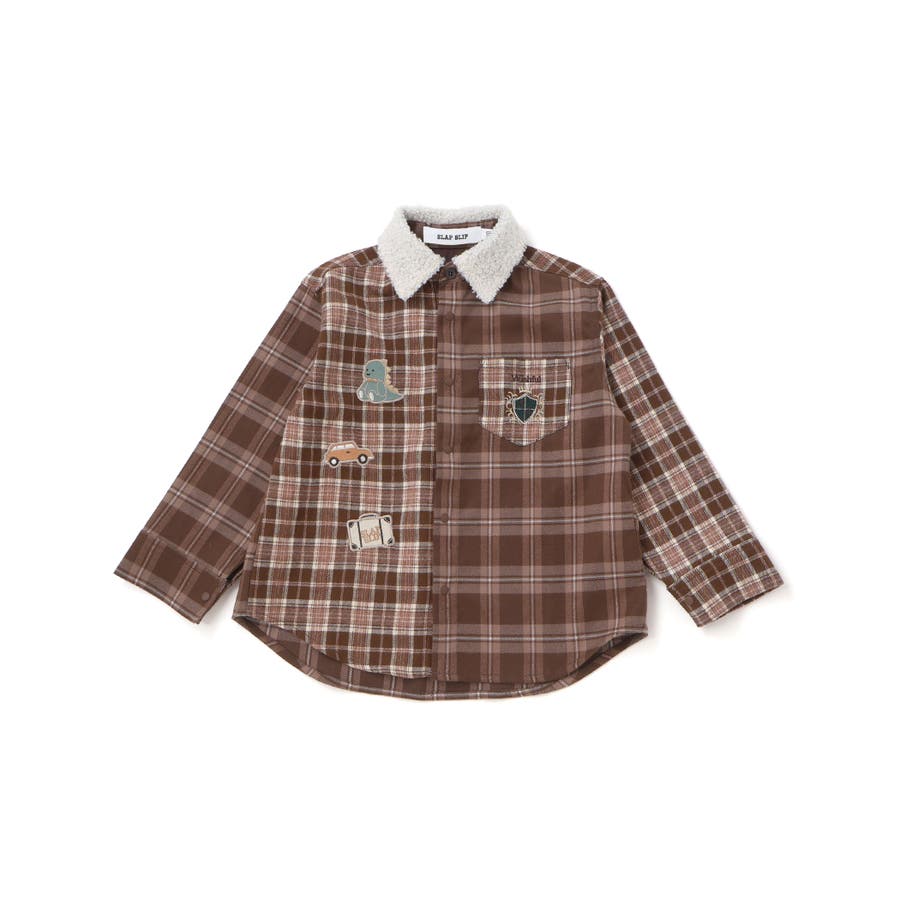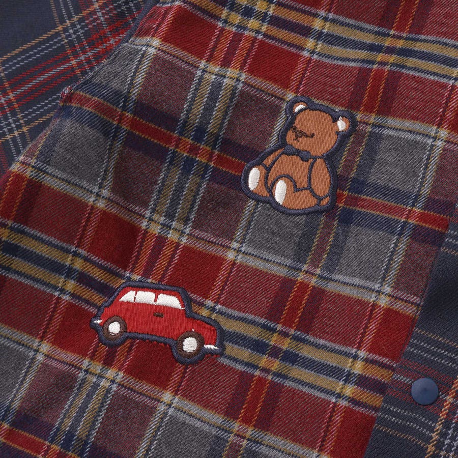 【お揃い】もこもこボア襟切り替えチェックシャツ(90~130cm)