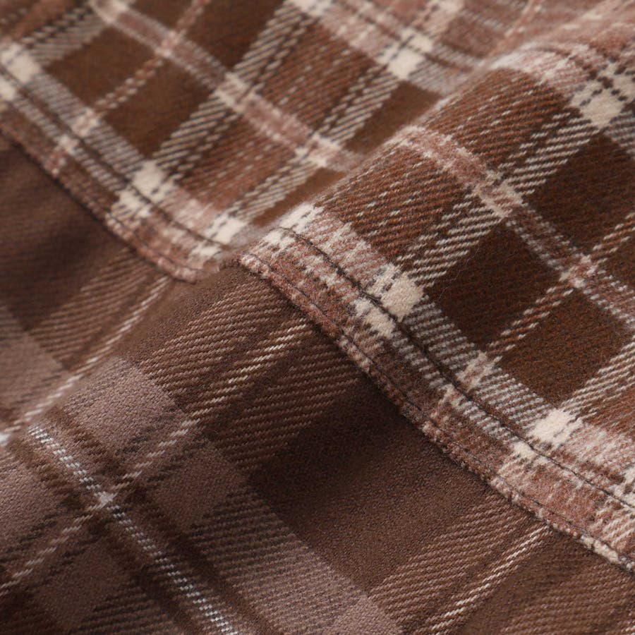 身生地には2種類のチェック生地を組み合わせた切り替えデザインを採用し、1枚でおしゃれに決まる存在感のある仕上がりに。