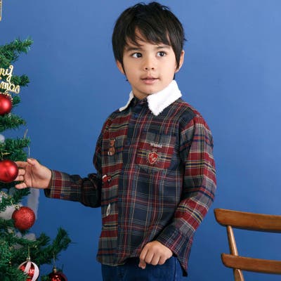 あたたかみのあるチェック柄が秋冬スタイルにぴったりな、男の子用長袖シャツ。