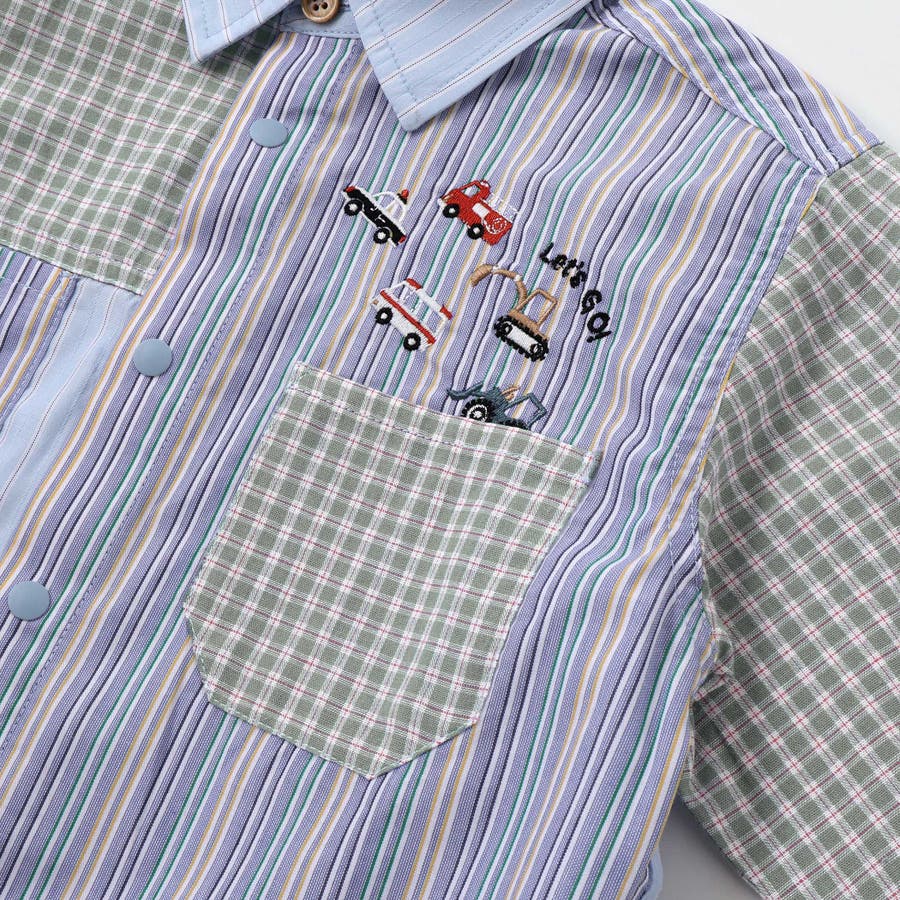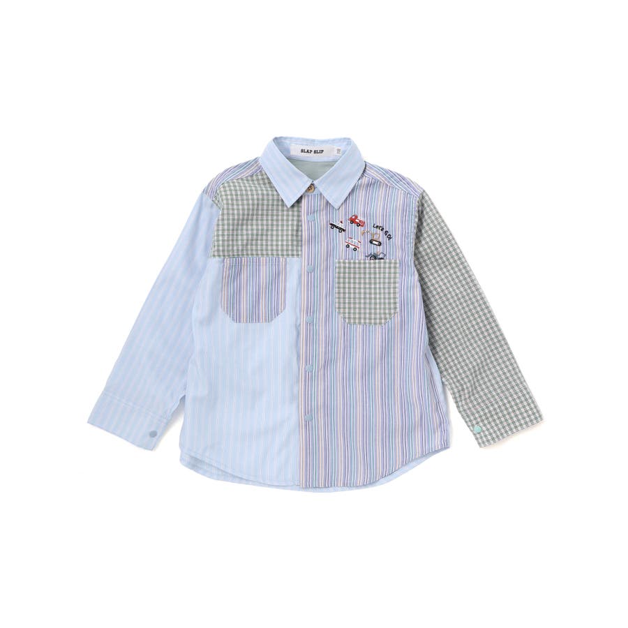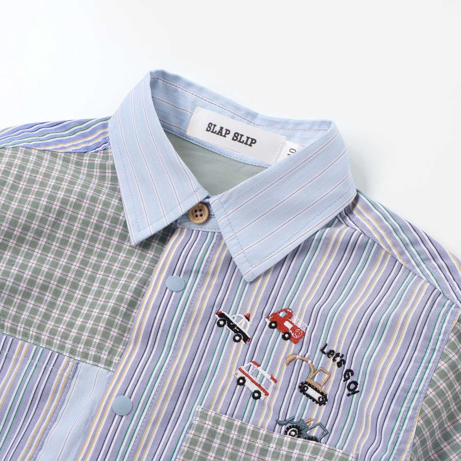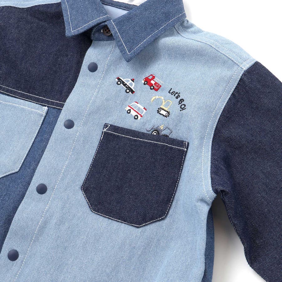 はたらくくるま刺しゅう胸ポケット切り替えデザインシャツ(80~130cm)