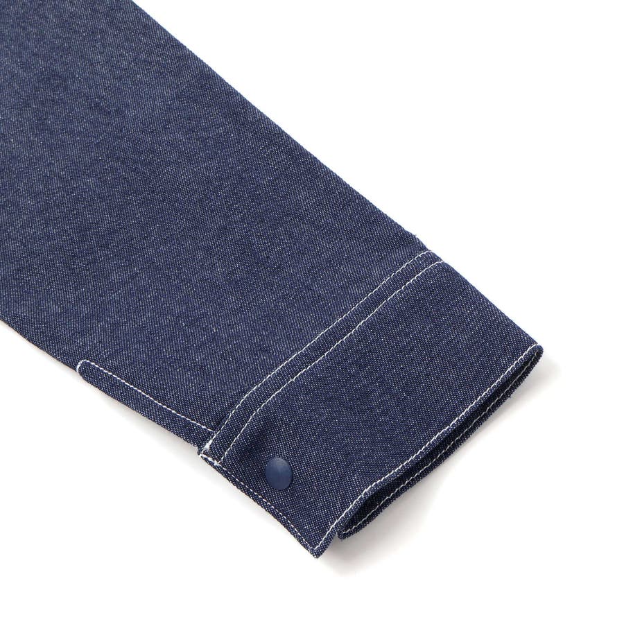 ネイビー系:ワンウォッシュ・ブリーチ・インディゴのライトオンスデニムを使用した、本格的なデニムらしさを楽しめる一枚。