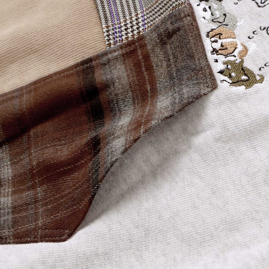 | 素材 | (本体)綿100% リブ:綿95% ポリウレタン5% (ポケット部分)チェック部分:ポリエステル98% ポリウレタン2% 無地部分:綿100% |