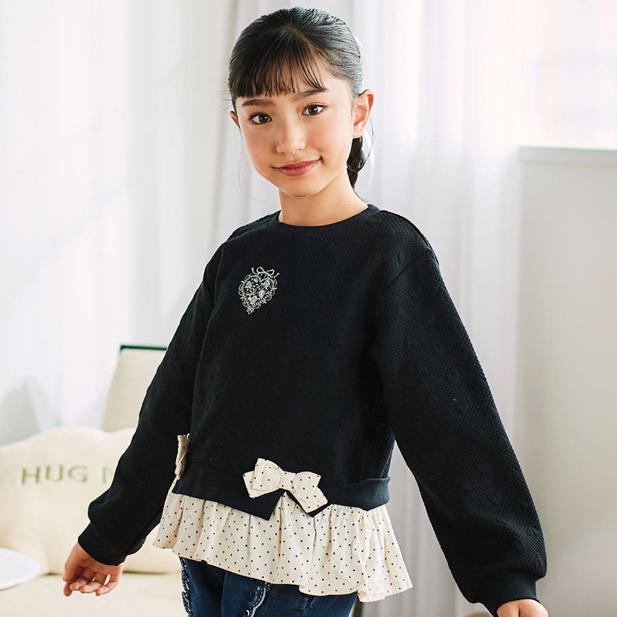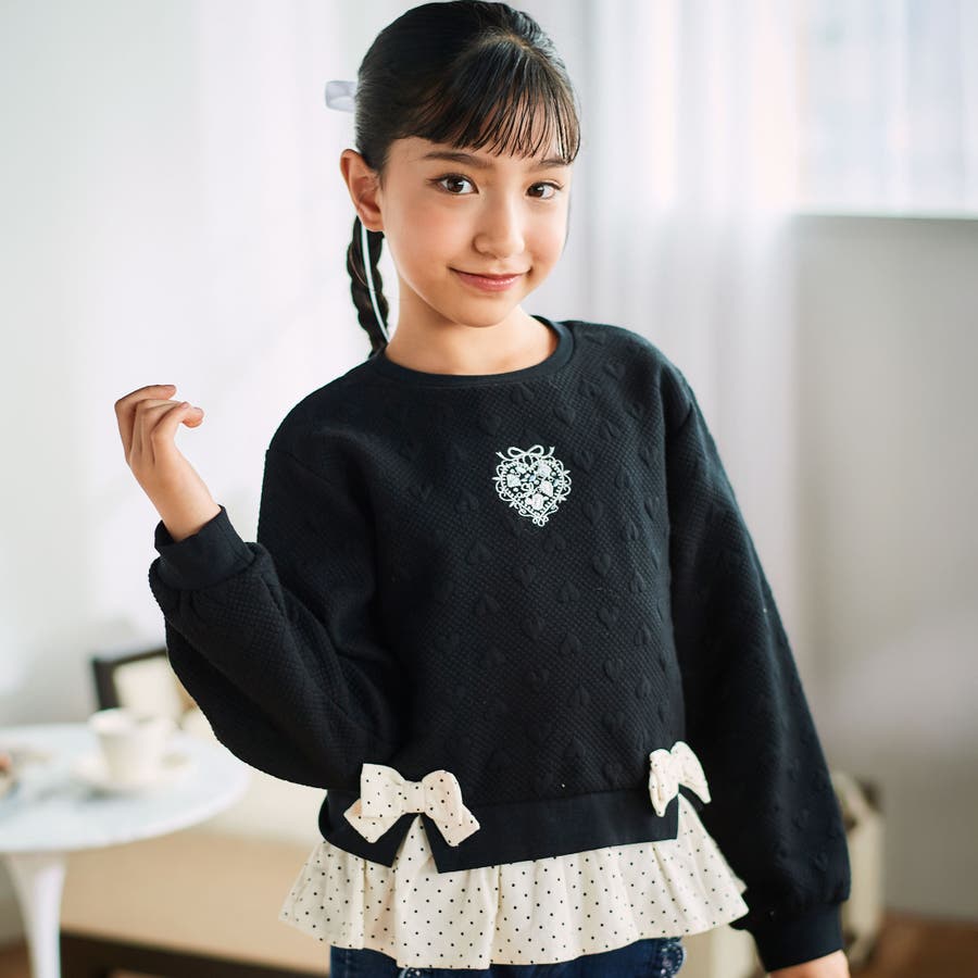 切り替えのリボンがキュートな女の子用トレーナー。