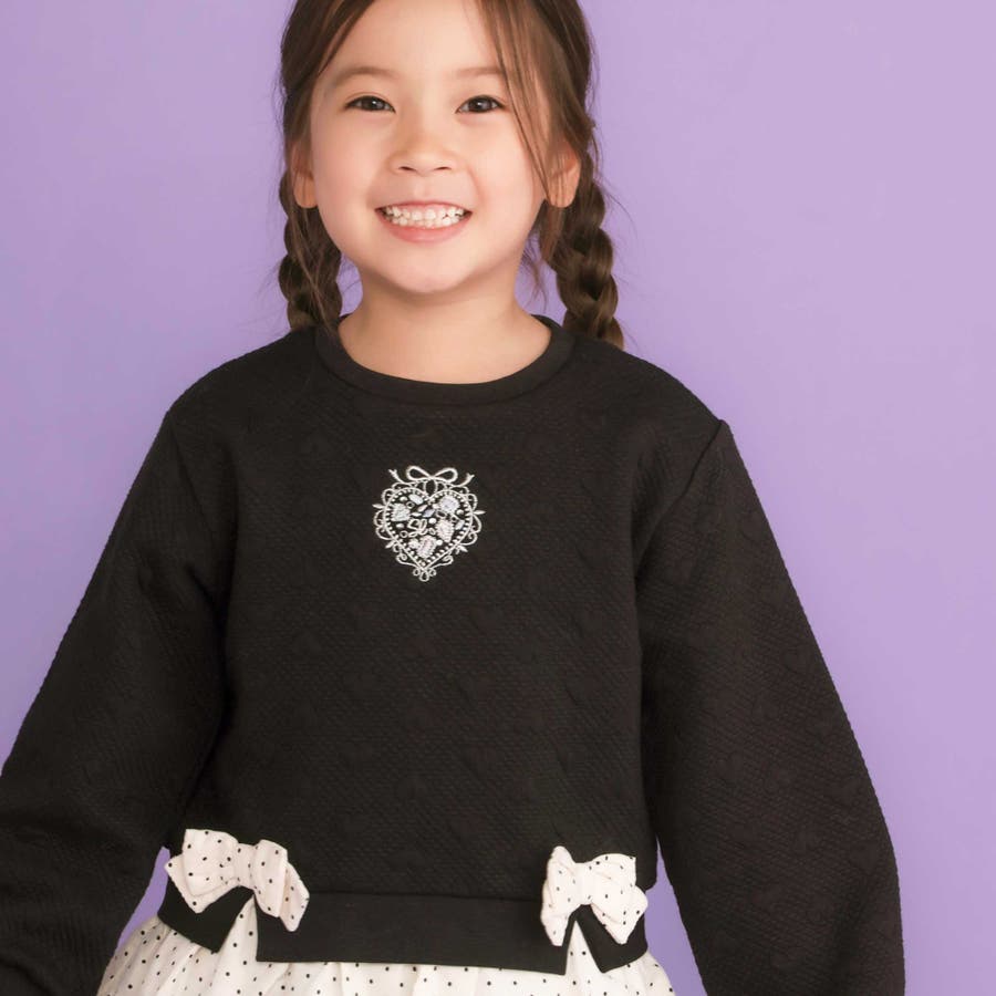 ハート柄コーデュロイ切り替えトレーナー(80~130cm)
