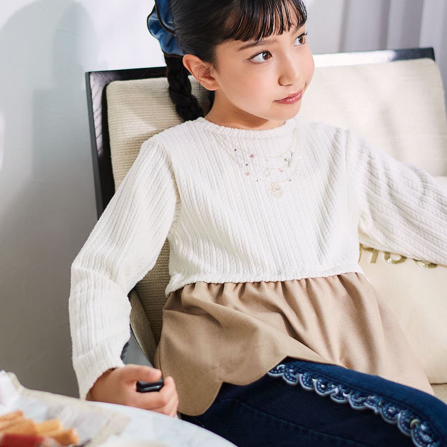 女の子らしい可愛らしさを詰め込んだ、ドッキングの長袖トレーナー。
