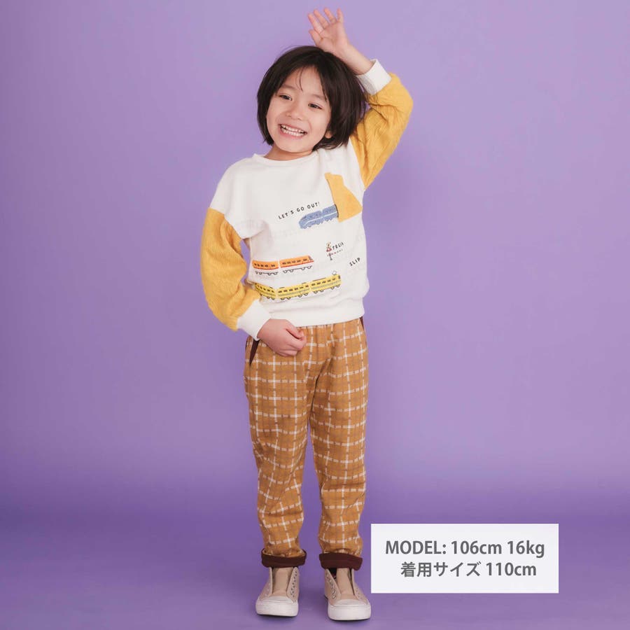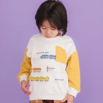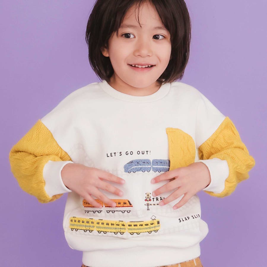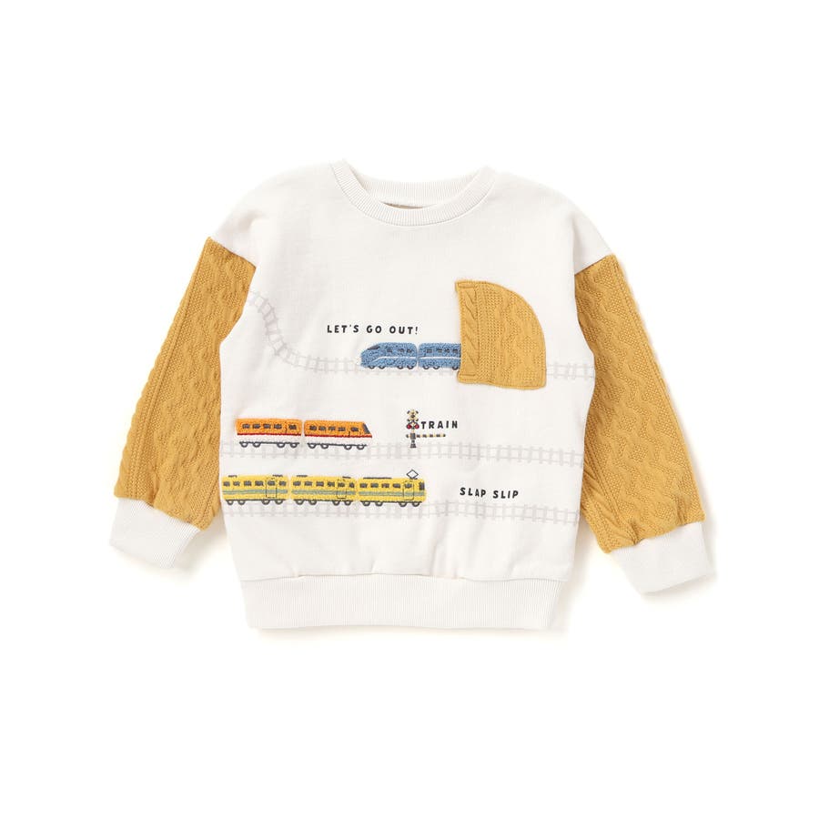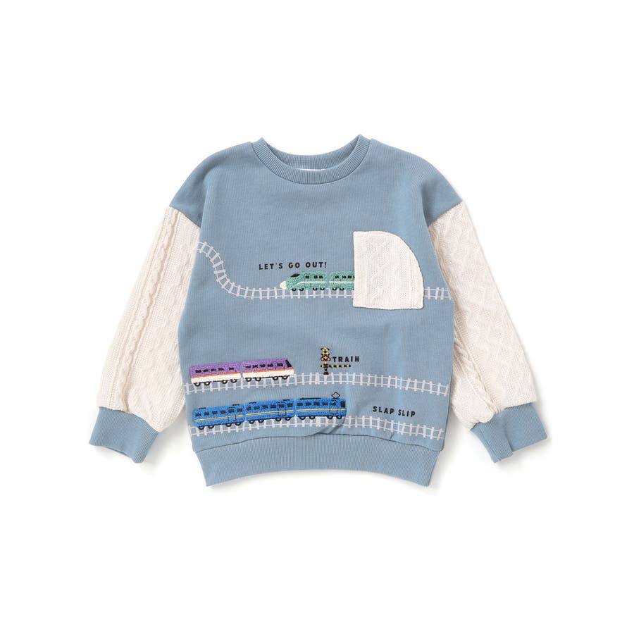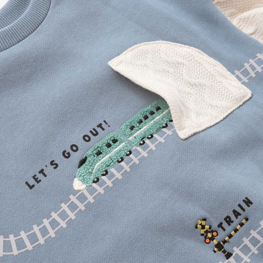 ガタゴト電車サガラ刺しゅう袖切り替えトレーナー(80~130cm)