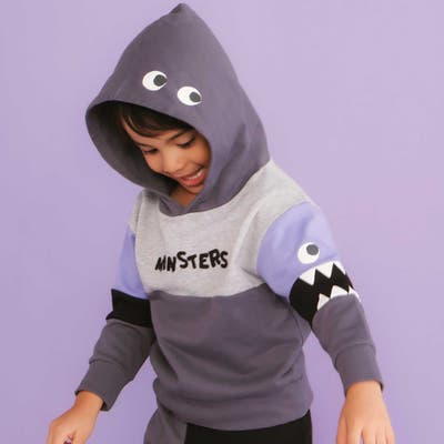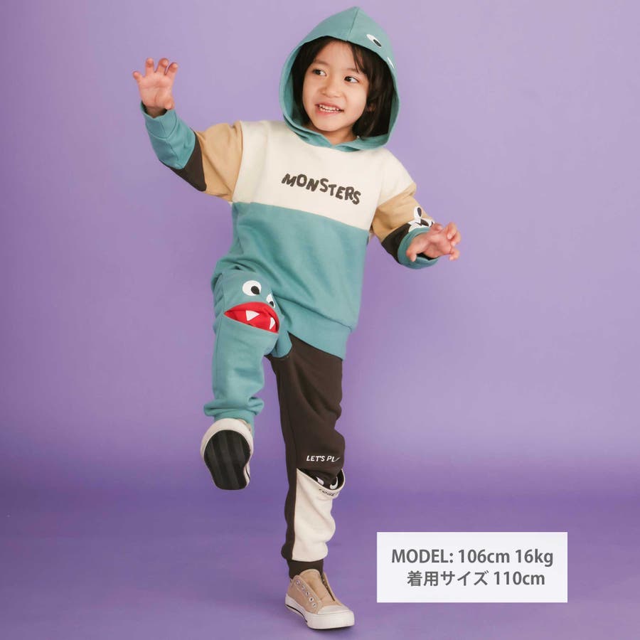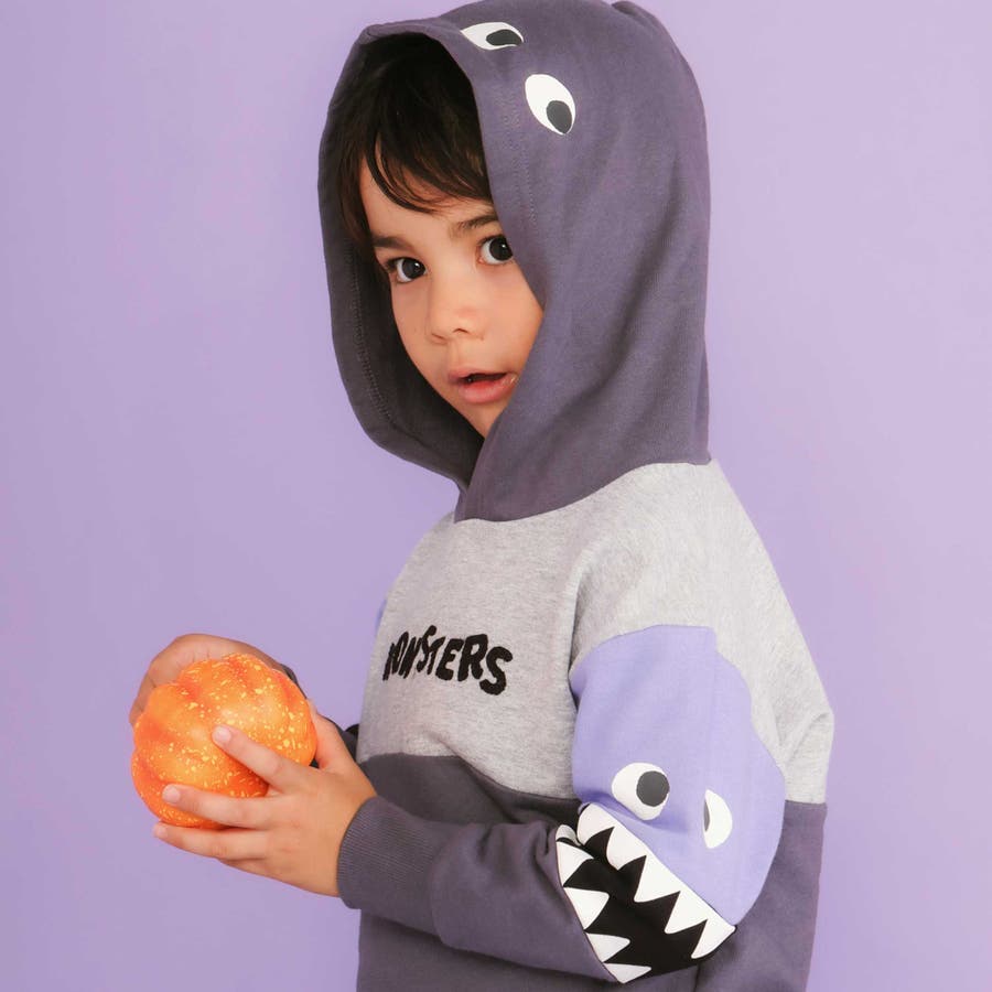背中やフード部分には、まんまるのモンスターアイを配置して、どこから見ても楽しい仕上がりになっています。