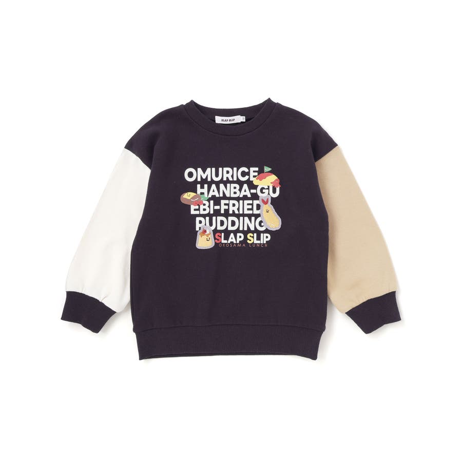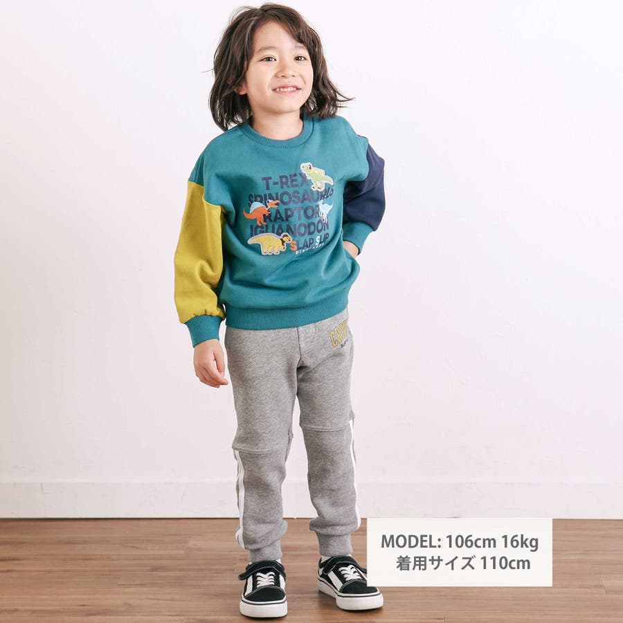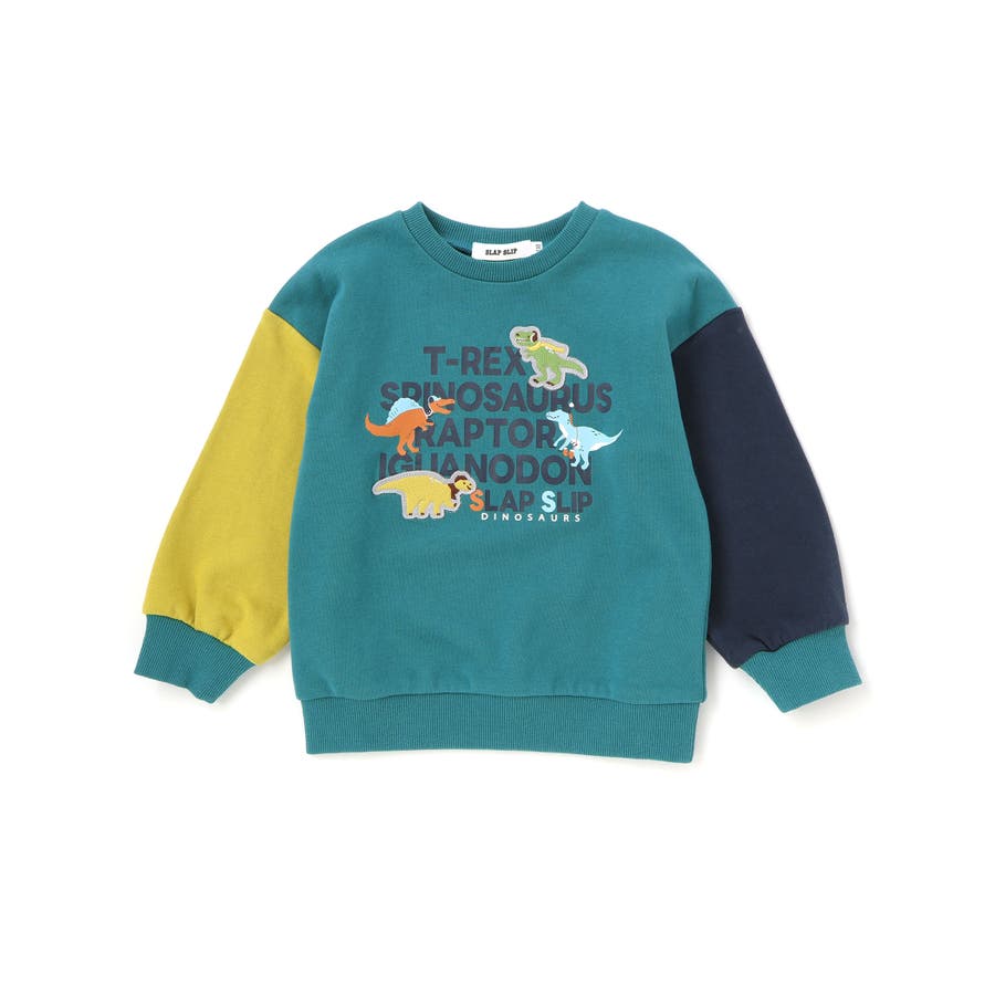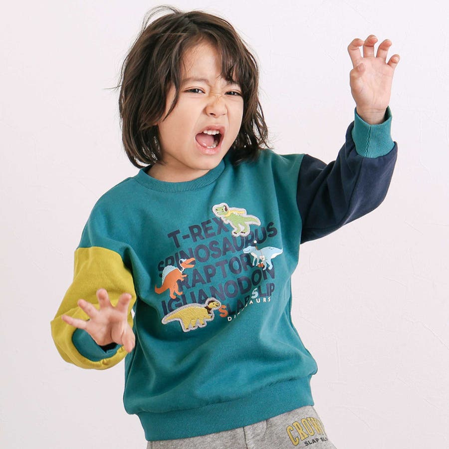 袖配色恐竜ごちそうモチーフトレーナー(80~130cm)