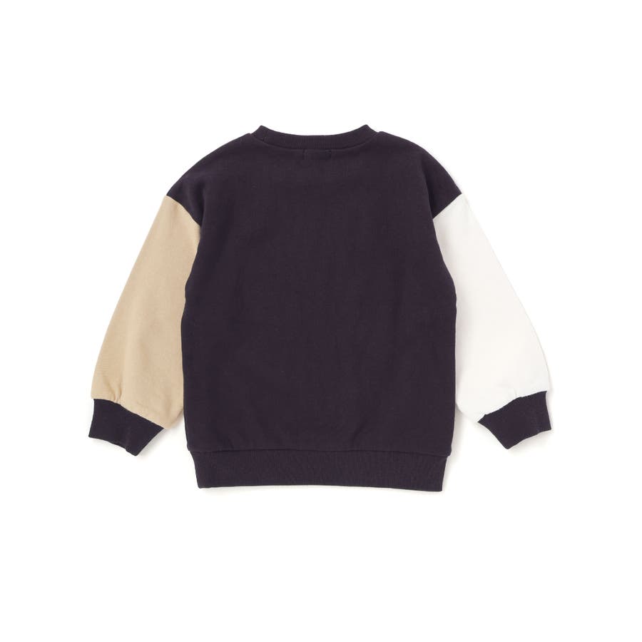 袖配色がアクセントになった、男の子用長袖トレーナー。