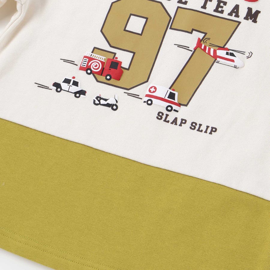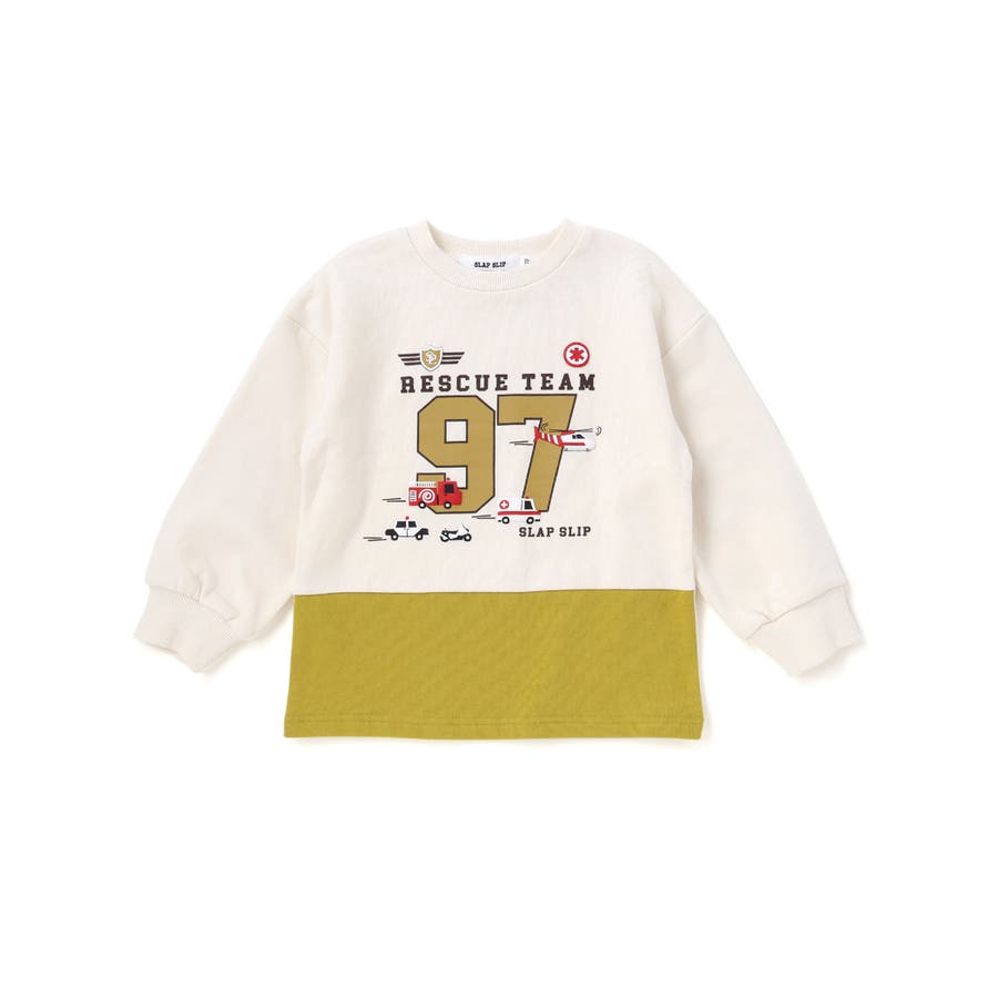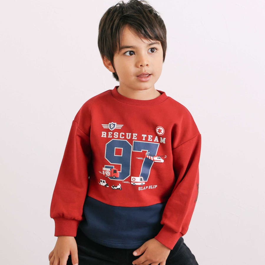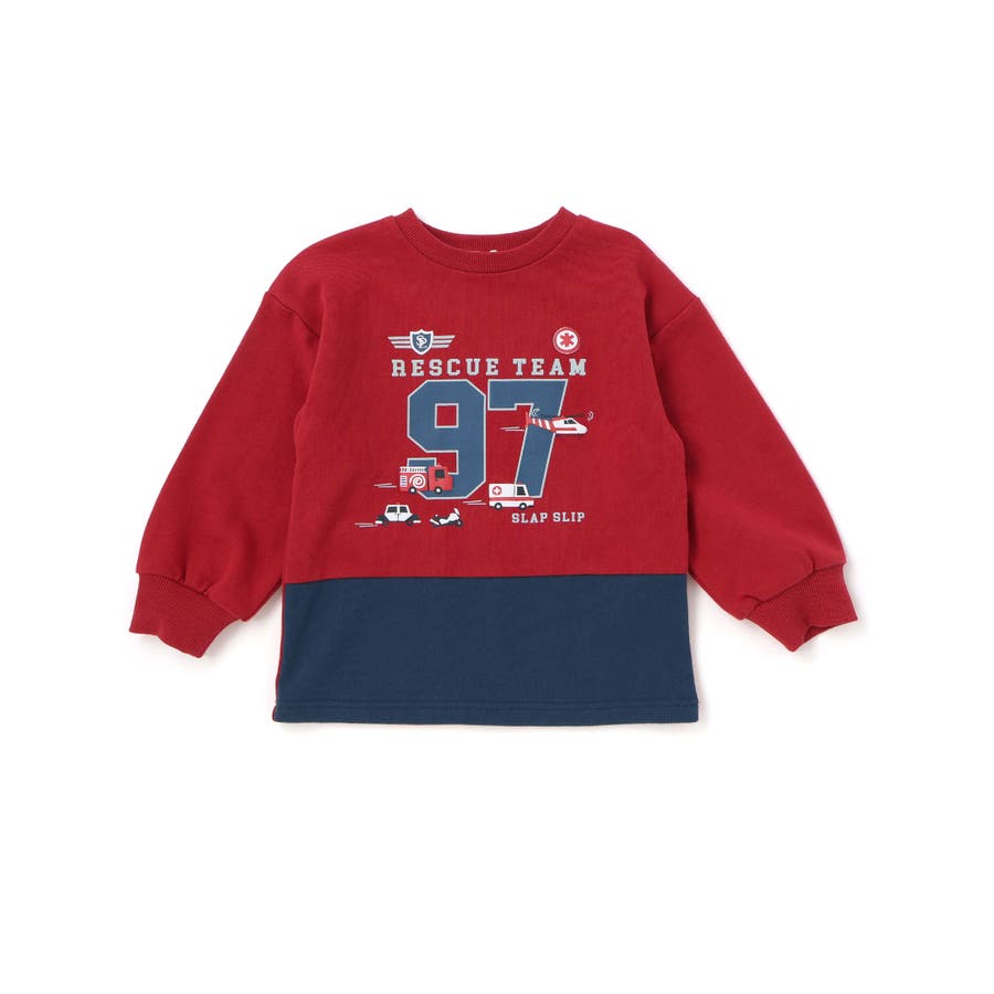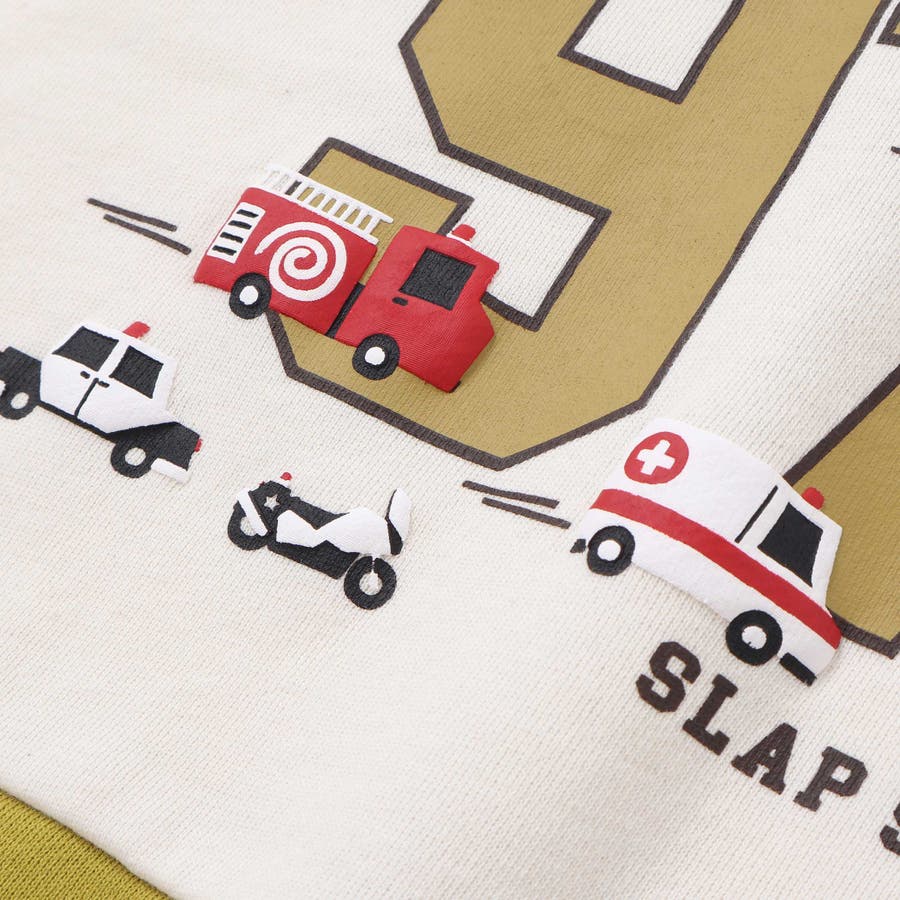 はたらくくるま発泡プリント星パッチナンバリングバイカラートレーナー