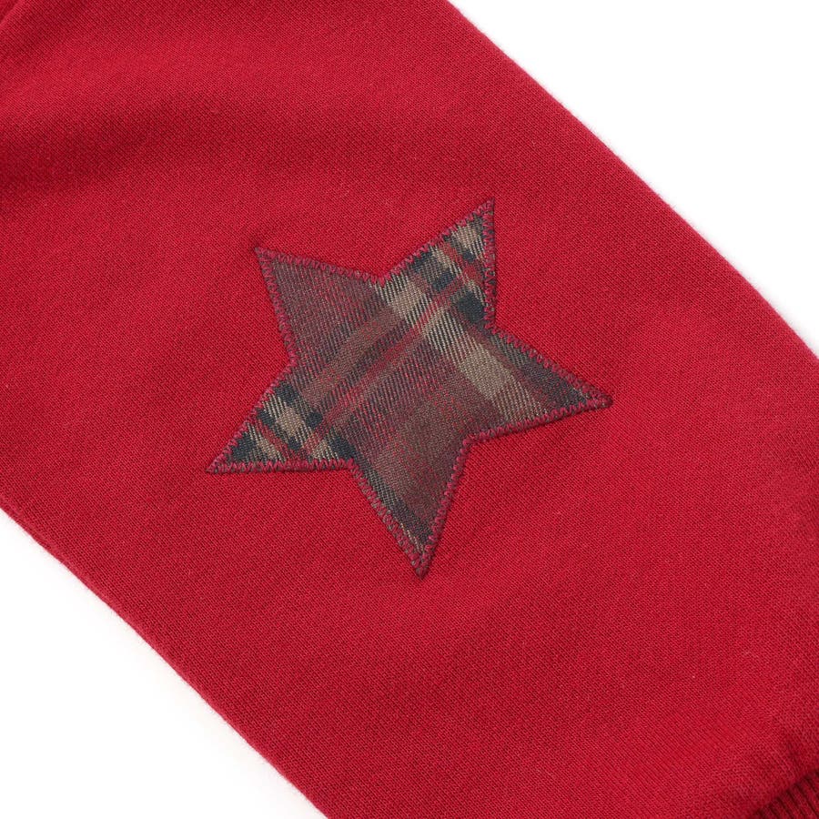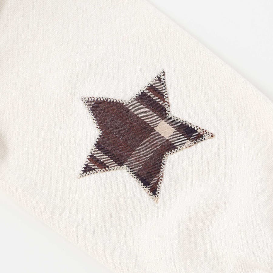 ひじ部分にはチェック柄の星型パッチをあしらい、動くたびにチラリと見えるデザインが元気な男の子にぴったり。