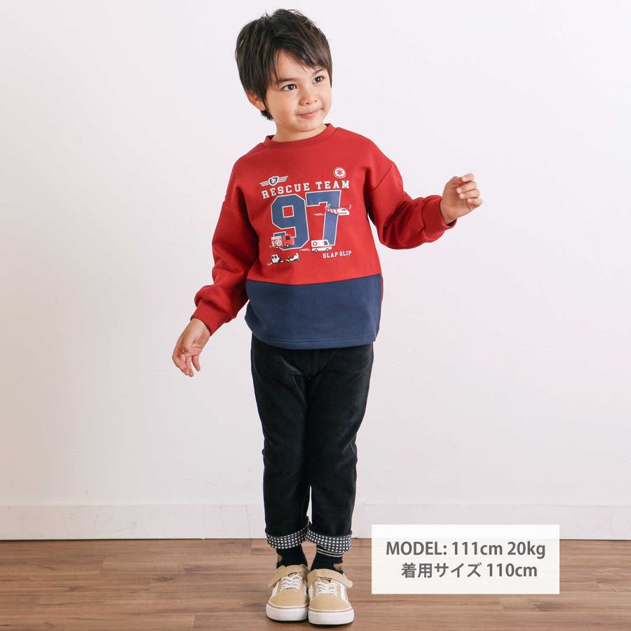 上下でカラーを切り替えたバイカラーデザインが印象的な男の子用トレーナー。