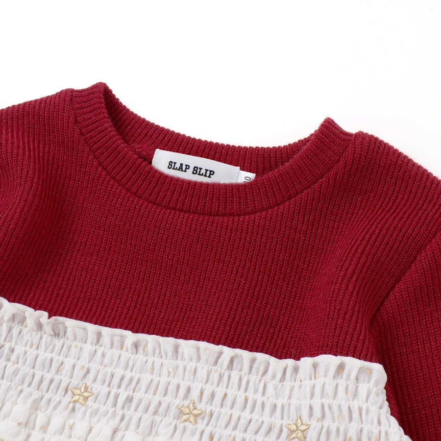 切り替え上にはシャーリングをほどこし、ラメ糸の星刺しゅうがキラキラと輝き、冬のおでかけや特別な日のコーディネートを華やかに演出します。