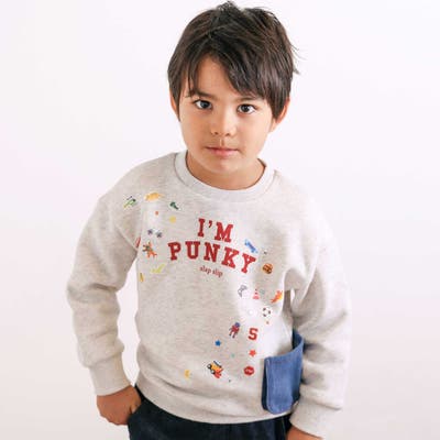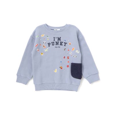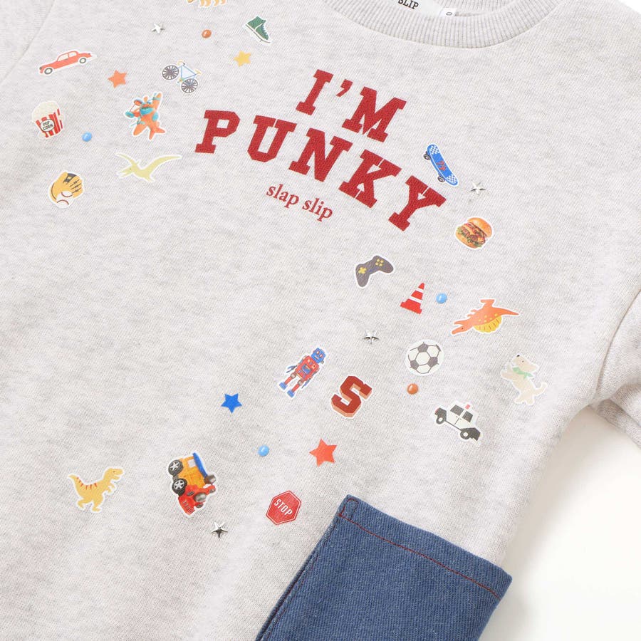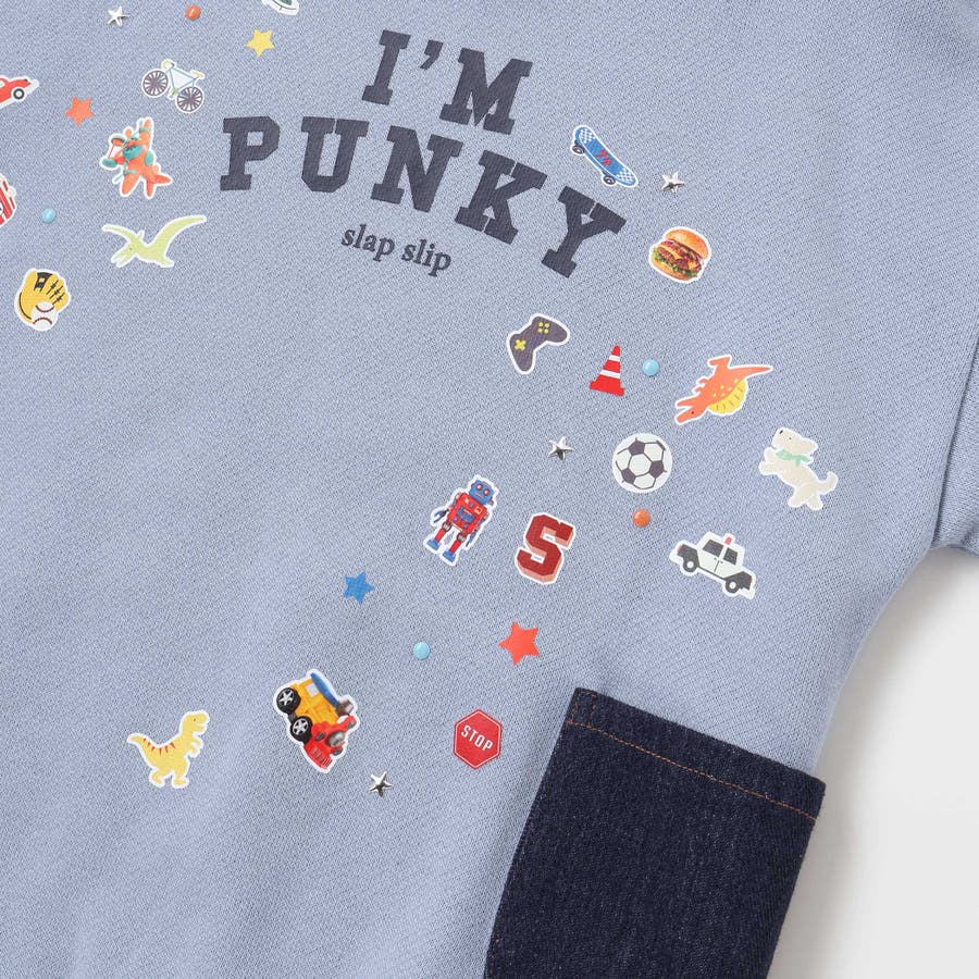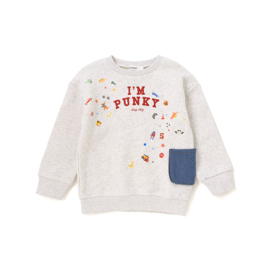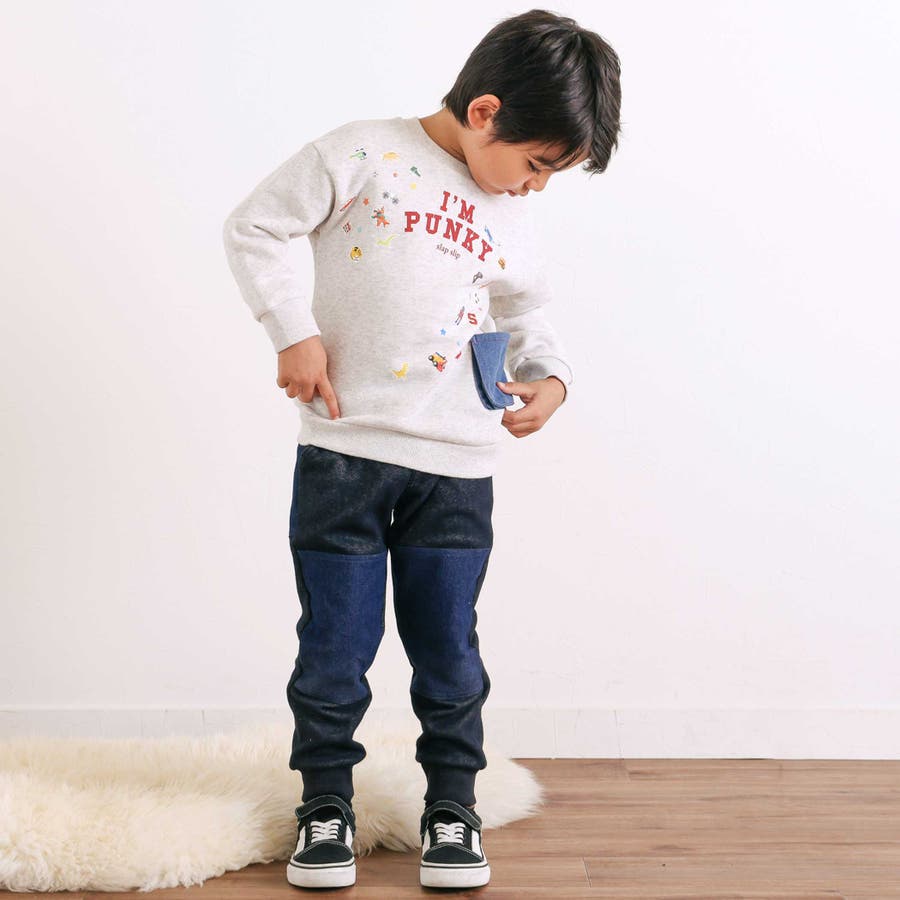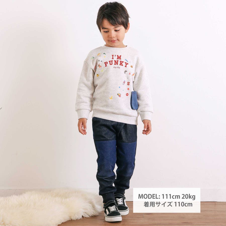 ペたぺたシール風プリントデニムポケット付きトレーナー(80~130cm)